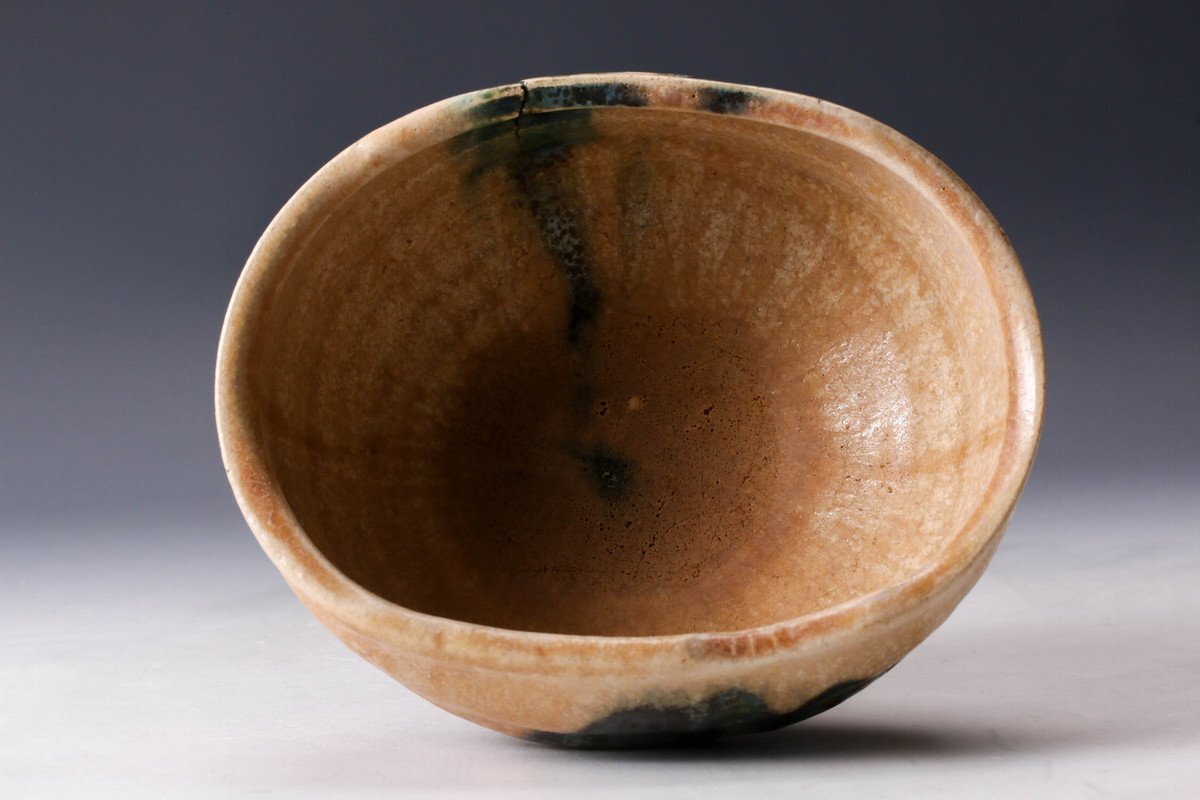 【佳香】時代 黄瀬戸沓茶碗 木箱 茶道具