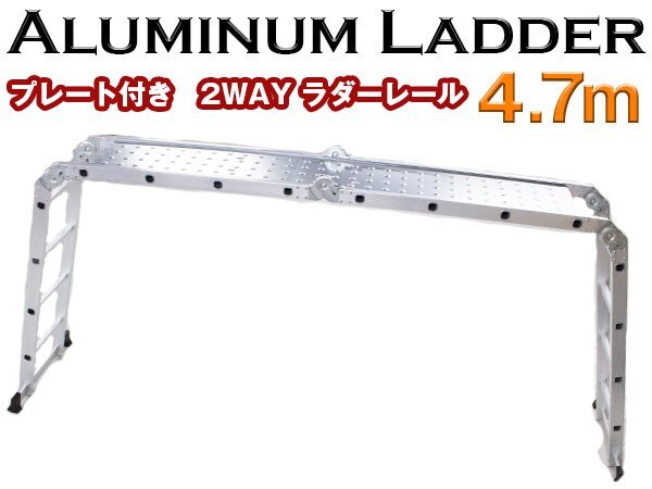 【送料無料】[プレート付き]折り畳み アルミ製 多機能 梯子 脚立 5.7m プレート付 足場 伸縮 ラダーレール はしご 倉庫 大掃除 洗車