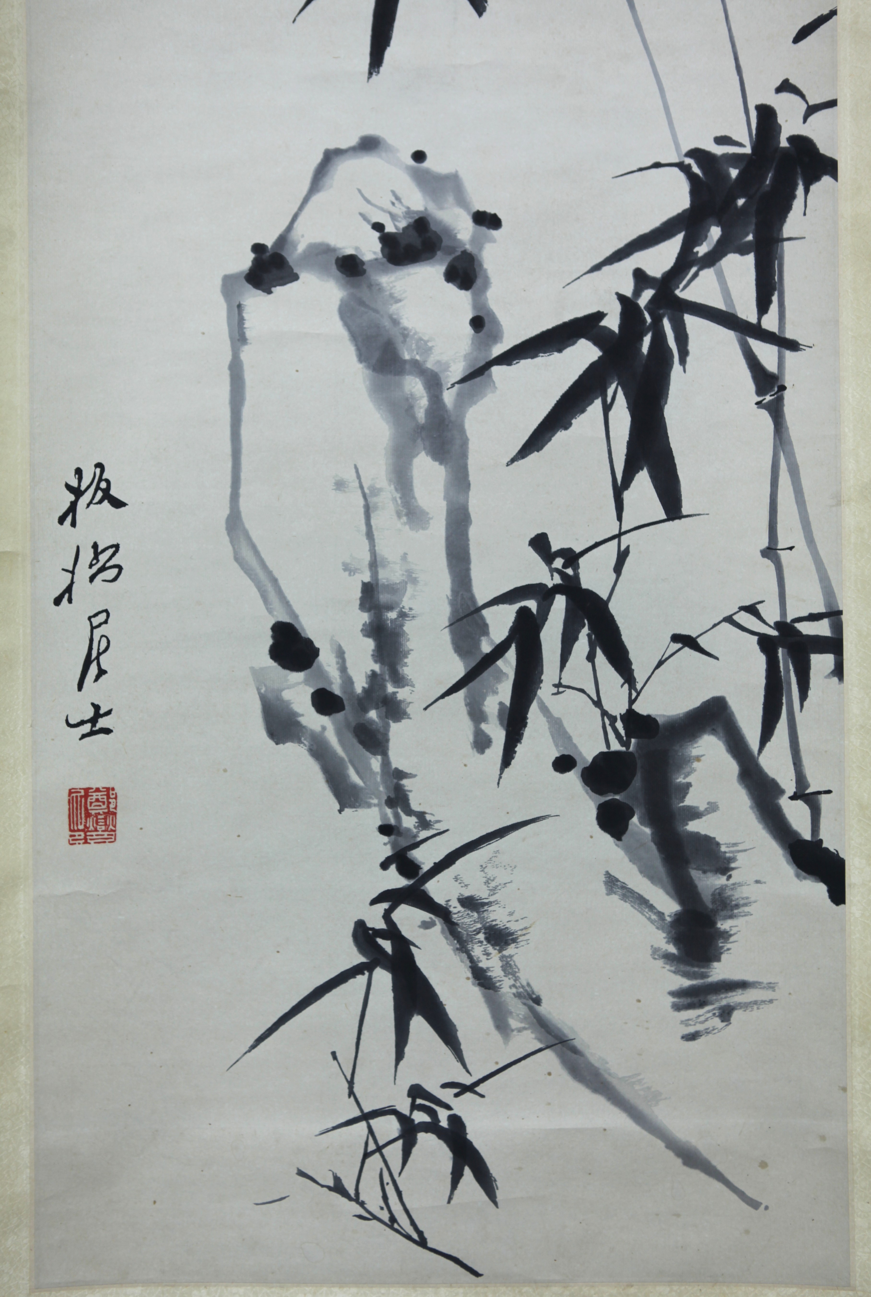 | 【複製】【風車】 鄭板橋 「竹石図」◎紙本掛軸 複製画 初期木板水印◎清代の画家 揚州八怪 詩書画三絶 | ||||||||||||||||||||