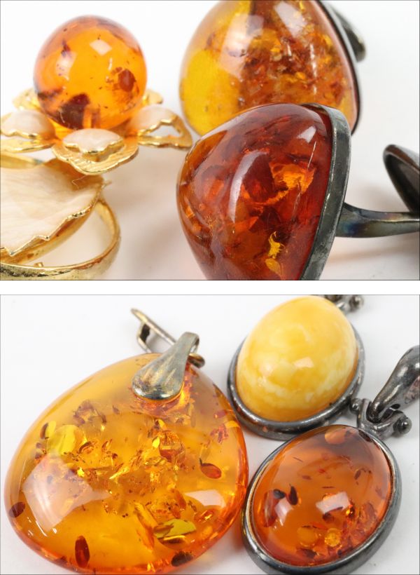 | 琥珀 アクセサリー まとめて 約106g ハニーアンバー 大粒ネックレス SILVER 925 875 ペンダントトップ 等 コハク シルバー 【彩irodori】 |