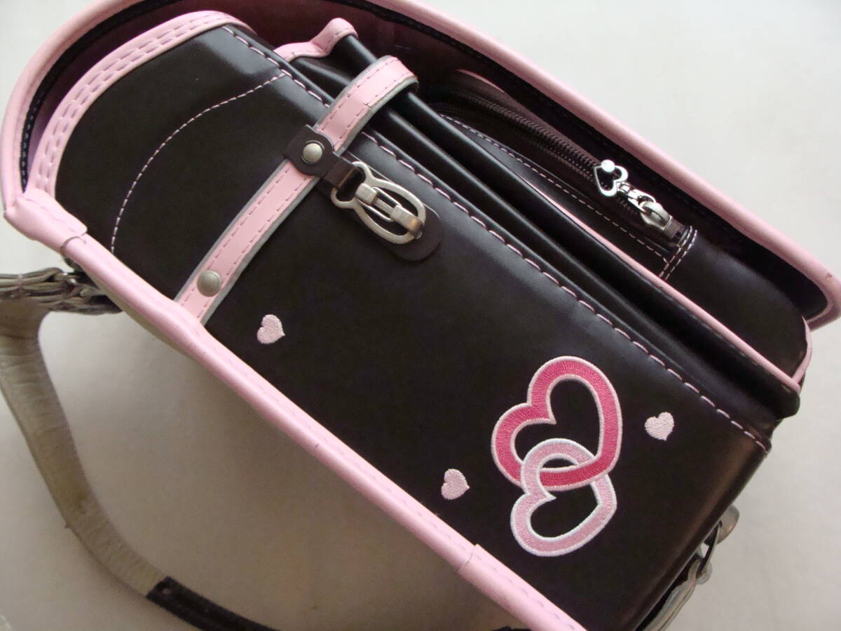 現状お渡し 中古ランドセル(ダークブラウン系)程度よし 日本製 ハートモチーフ 大きなダメージなし