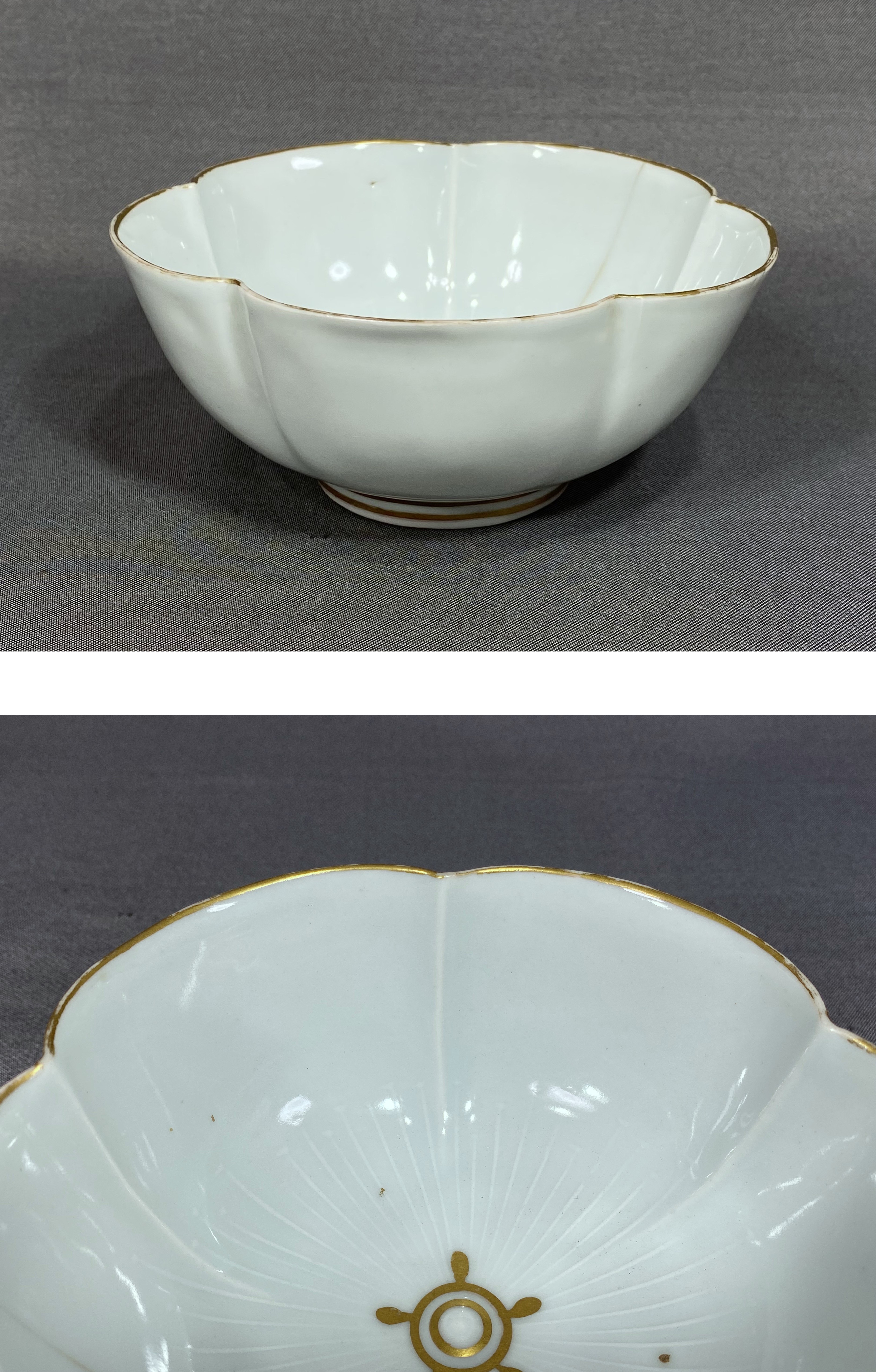 【風車】華中亭 道八 製 金彩 桜型 茶碗 鉢 傷有 高橋道八▲在銘▲ 和食器 陶芸家 京焼 古美術