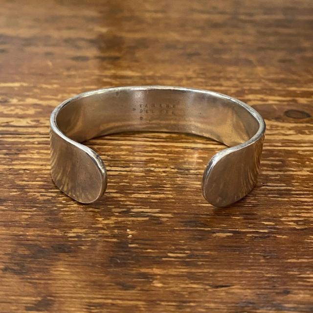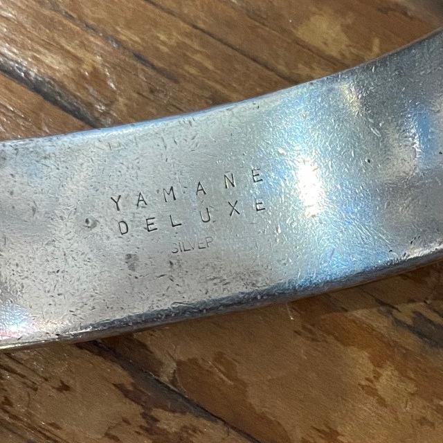 【YAMANE DELUXE(ヤマネデラックス)の家紋バングルです。2000年代初期の希少なお品です。17mm幅の肉厚な平打ちバングルに、家紋がセットされた雰囲気抜群のバングルです。重さ63gと重量感もあります。シンプルなデザインで、単体ではもちろん、他のブレスや時計とも合わせやすいです。20年以上前の物で、数も少なく市場にはほとんど出回っていないと思います。お探しの方、是非…!】