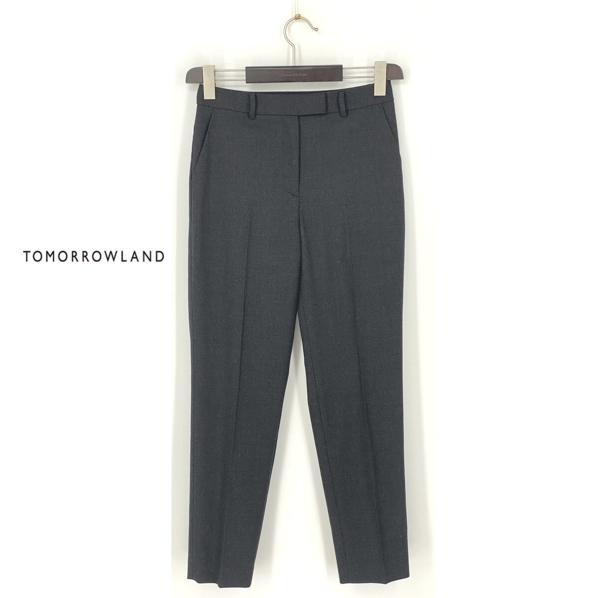 B0321/極美品 TOMORROWLAND COLLECTION トゥモローランド ウール 無地 ストレッチ テーパード スラックス パンツ 34 S程 灰色 レディース