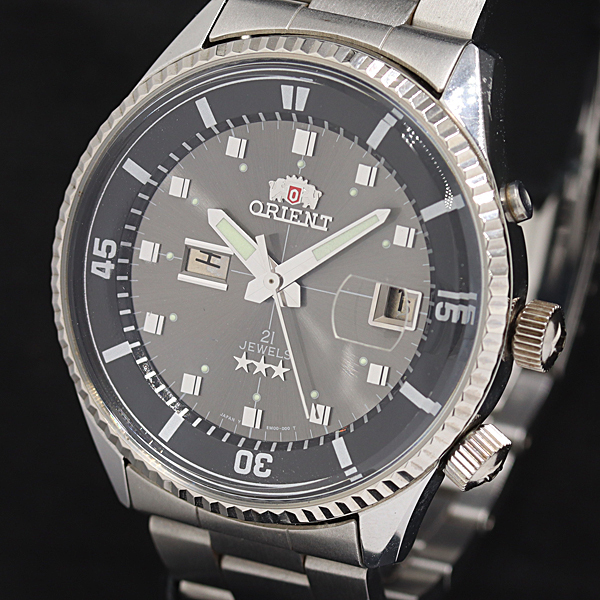 1円 稼働 オリエント スリースター EM00 AT/自動巻 グレー文字盤 メンズ腕時計 0045100 12JWT SMZ