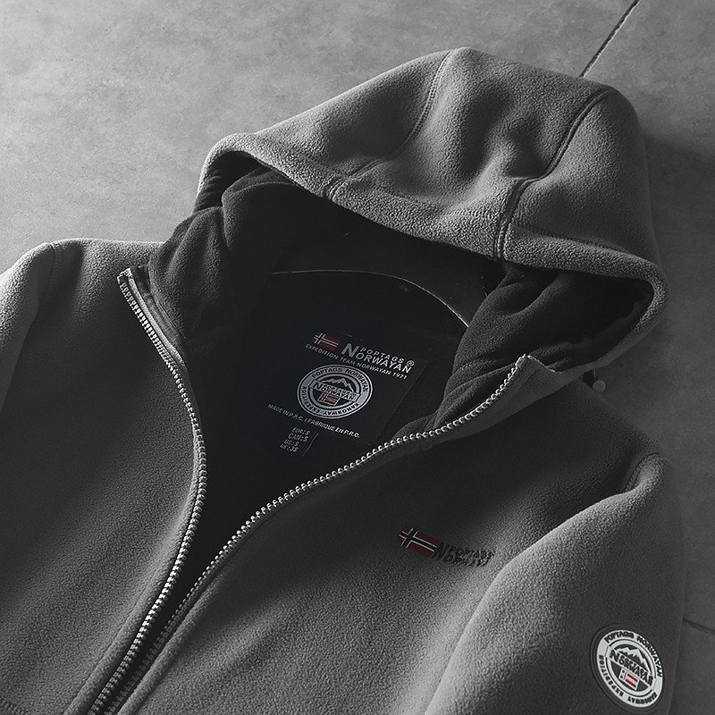 新品 フリース ジャケット デザイナーズ フード付き ジップブルゾン 暖かさ 裏ボア 厚手メンズ 秋冬 フードブルゾン アウター 灰 T7163-2XL