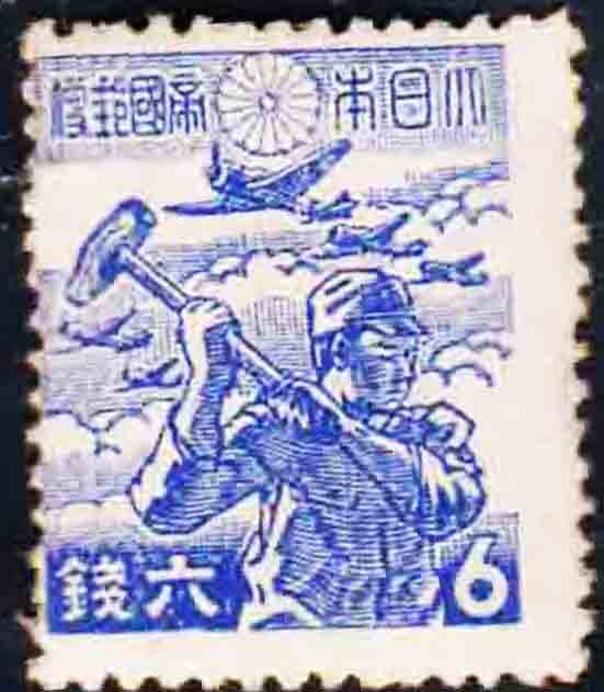 | (820)日本切手・6銭産業戦士未使用・オフセンター |