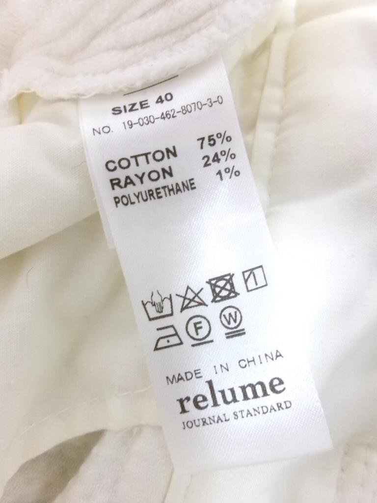【送料込】 JOURNAL STANDARD relume ジャーナルスタンダードレリューム パンツ ホワイト 白 綿混 コーデュロイパンツ size40 L/976302