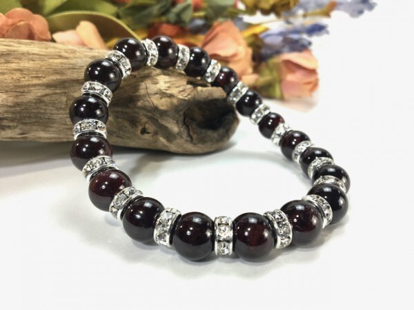 ガーネット パワーストーン ブレスレット 天然石ブレス 10mm メンズ・レディース (ロンデル:シルバー) 開運 浄化 数珠ブレス♪