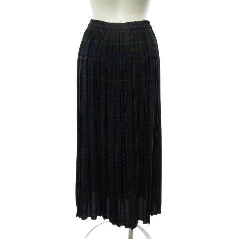 イエナ IENA ロングスカート ウエストゴム チェック プリーツ グリーン ネイビー34 レディース