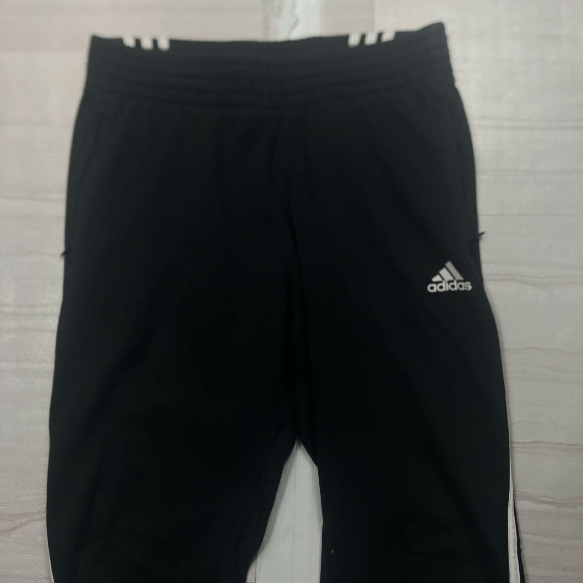 (TS1213) adidas アディダス トラックパンツ ジャージ パフォーマンスロゴ ワンポイントロゴ スリーストライプス ブラック L