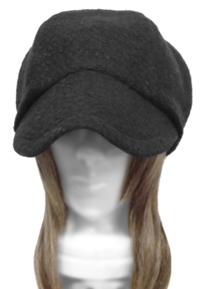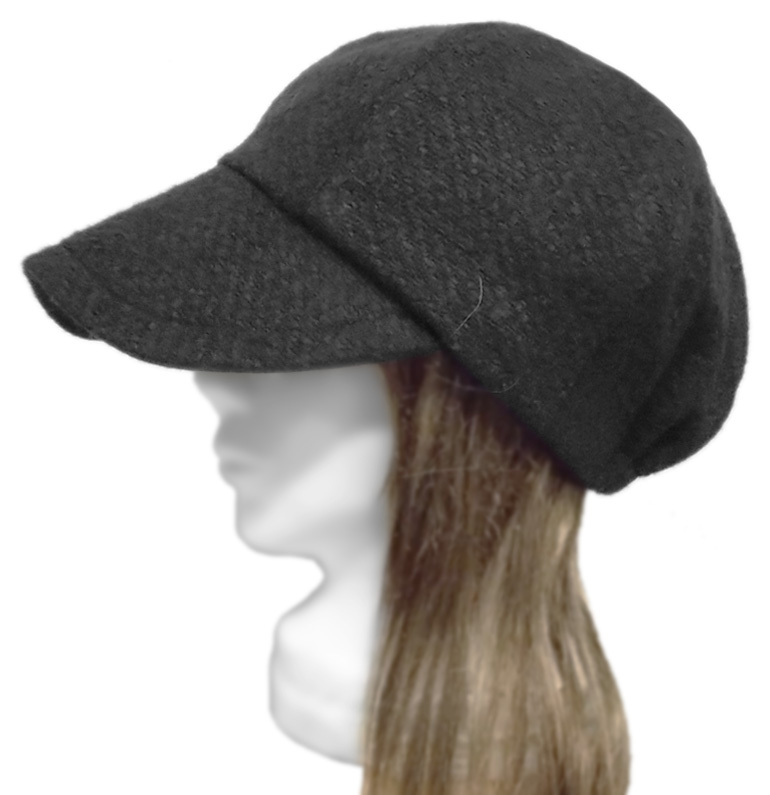 ハンドメイド◆つば広キャスケット◆ラッセル織ウールネップニット/ブラック ◇ゆったりサイズ・寒い季節におすすめ・紫外線対策◇