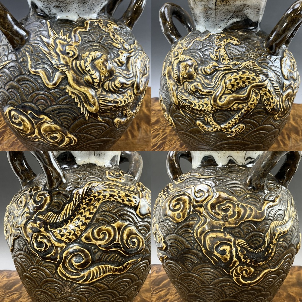 ■メーカー: 【Tsuboya ware】壷屋焼 ■商品名: 骨董品 ■モデル名: 琉球 銘 耳付 浮彫波龍図花瓶 ■対象: _ ■素材: 陶磁器 ■付属品: なし ■商品説明: 本品は京都市内の解体前の一軒家の整理品としてお譲り頂いたものでございます。 本品は古いものや蔵等での保管品ですので、表記しきれない時代物としてのスレや、変色、使用へこみ、高台の使用あたり、小キズ等の欠点はあります。 そういう時代感等を欠点も含めてご理解頂ける方の入札をお待ちしています。 これらの理由によるご返品・キャンセルはお断りいたします。 | |