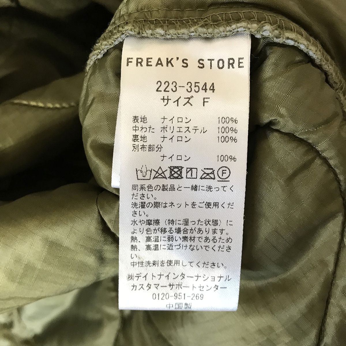 ブランド名:FREAK'S STORE サイズ:F 着丈:84 cm 袖丈:52 cm 肩幅:57 cm 身幅:67 cm 色:カーキ 状態:糸キズ有。 | ||||||||||||||||||||||||||||||||||||||