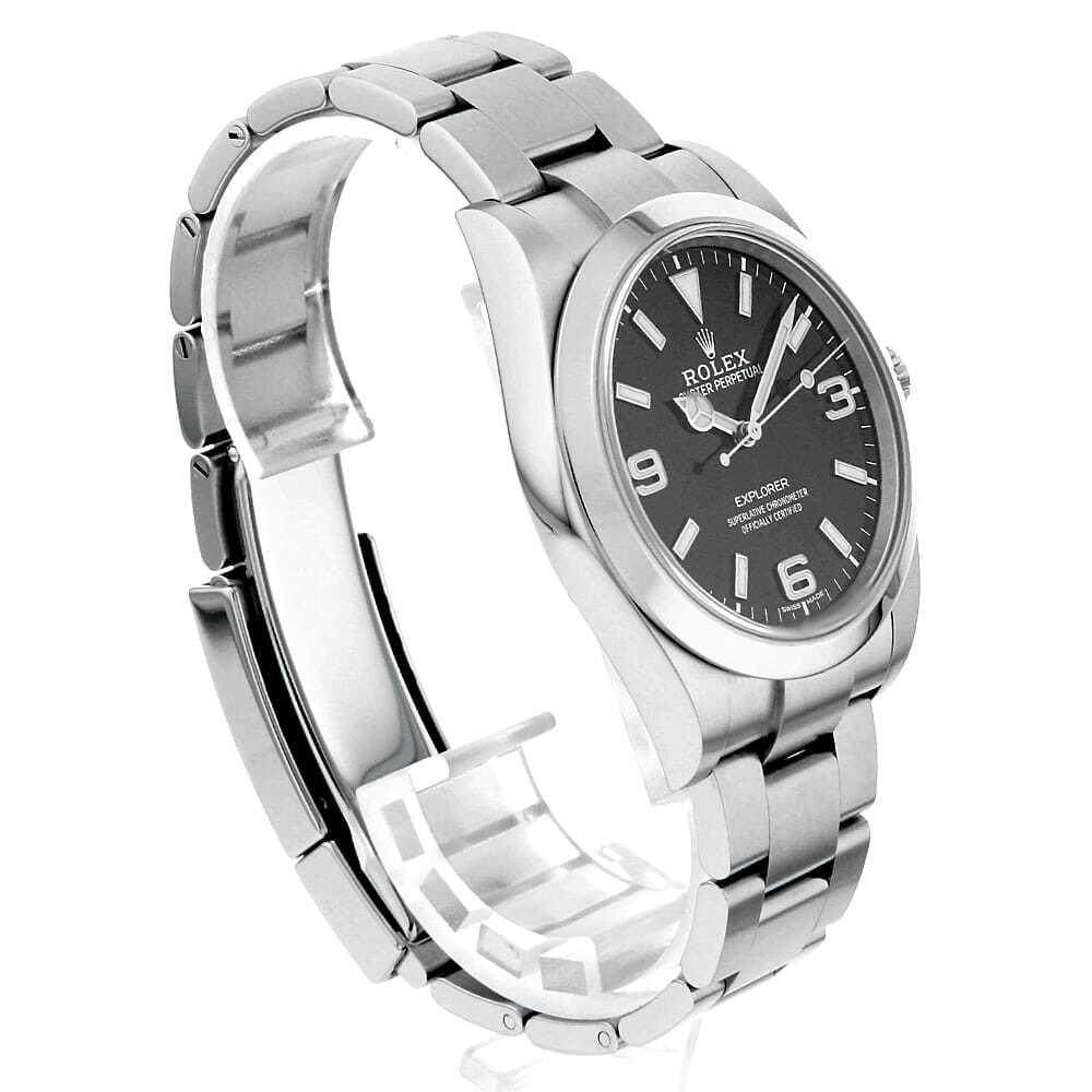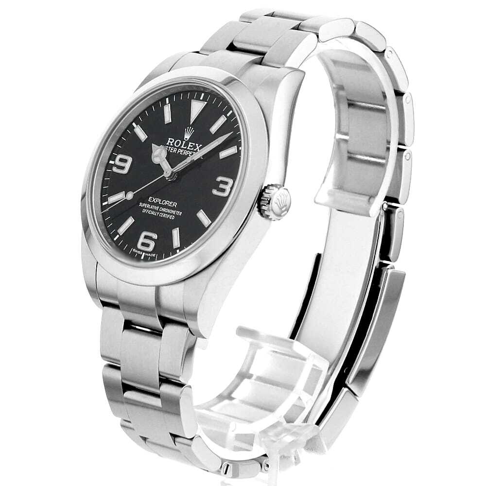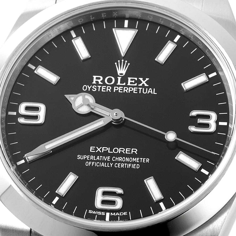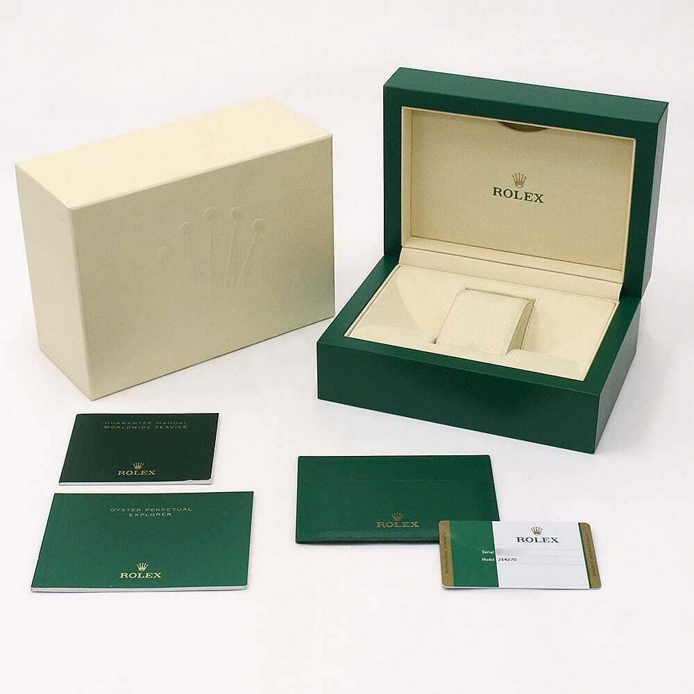 | モデル情報 | 2016年のバーゼルワールドで発表された"エクスプローラー" Ref.214270です。アラビアインデックスの3・6・9にもクロマライト夜光が塗布され視認性が向上。さらに時分針にも変更が加えられ、これまでよりも長く太い針になりました。リファレンスナンバーに変更は無くマイナーチェンジの位置づけになりますが、性能は確実にアップしています。 |