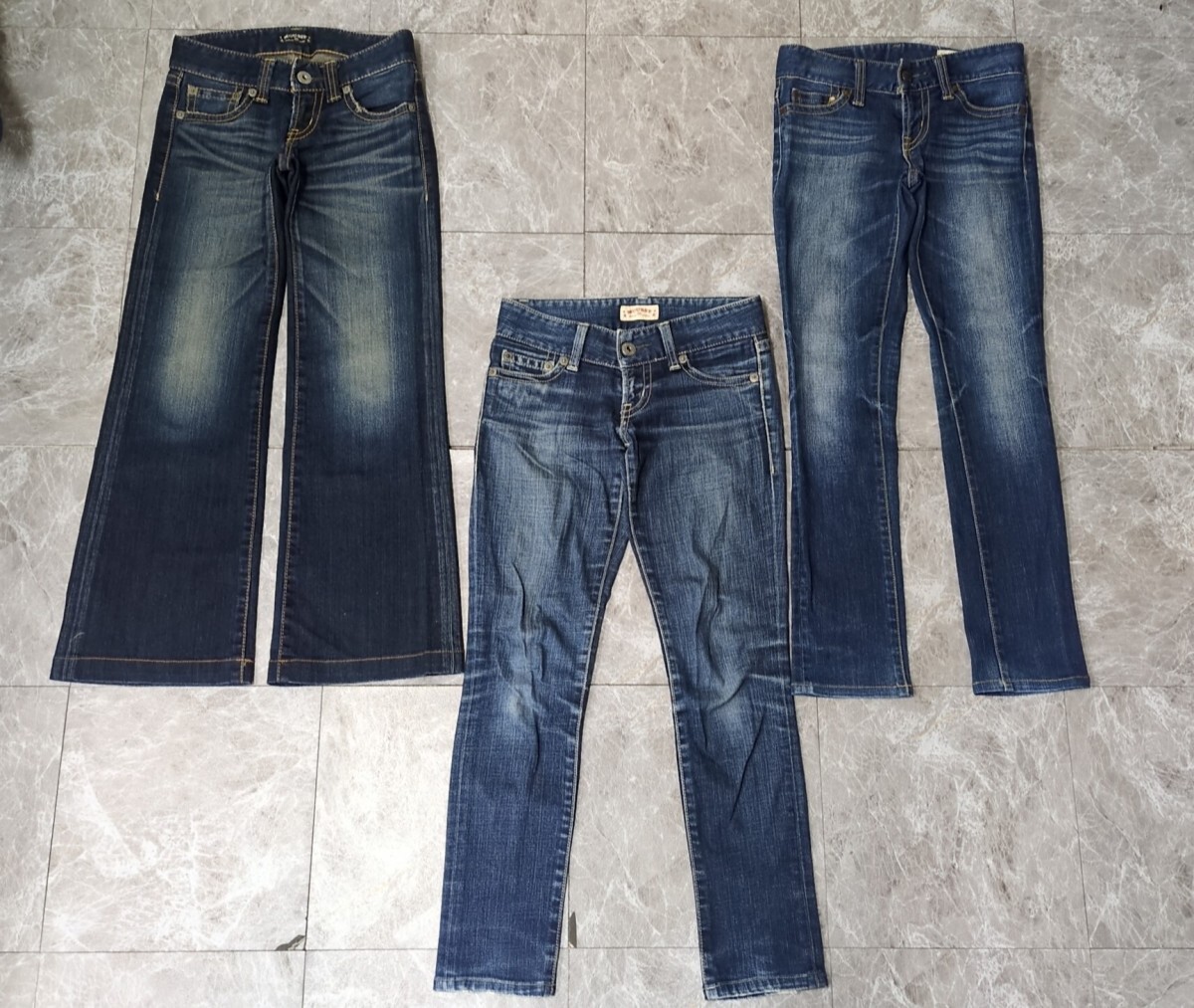 | 正規品です。 【肩幅】 【着丈】 【身幅】 【袖丈】 目安 ベルボトム 【ウエスト】70 【総丈】89 【股下】72 【裾幅】24.5 (ベルボトム) / 14.5(スキニー) レディース24。インディゴ 1点裾に擦れ。 |
