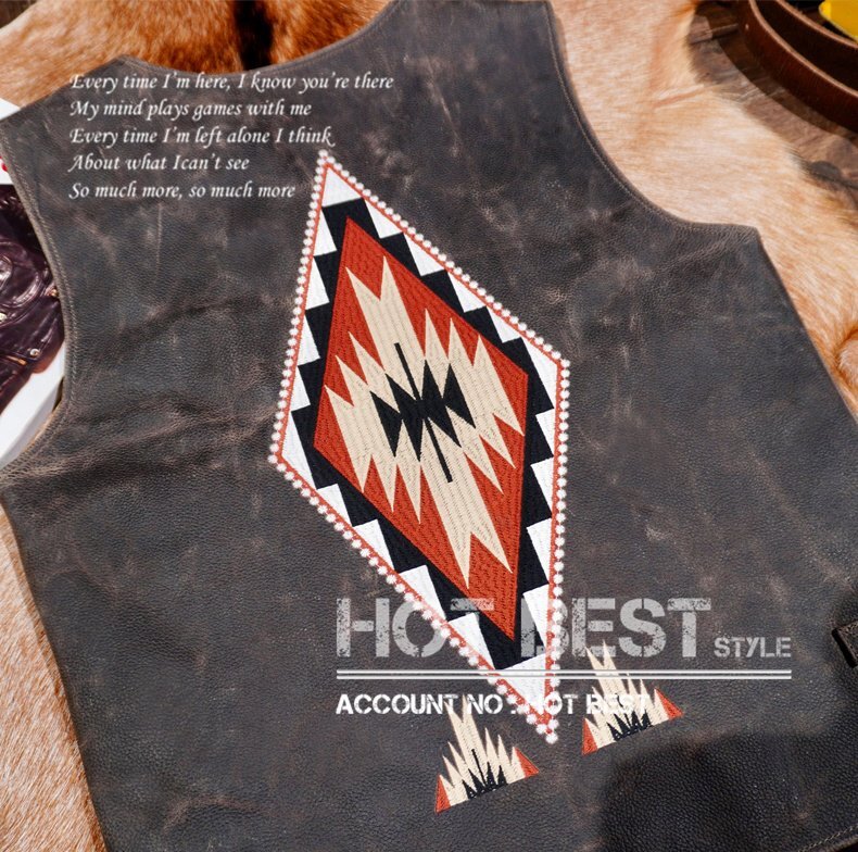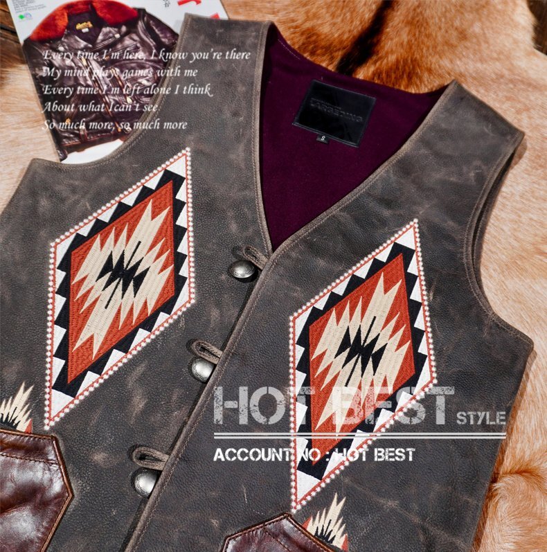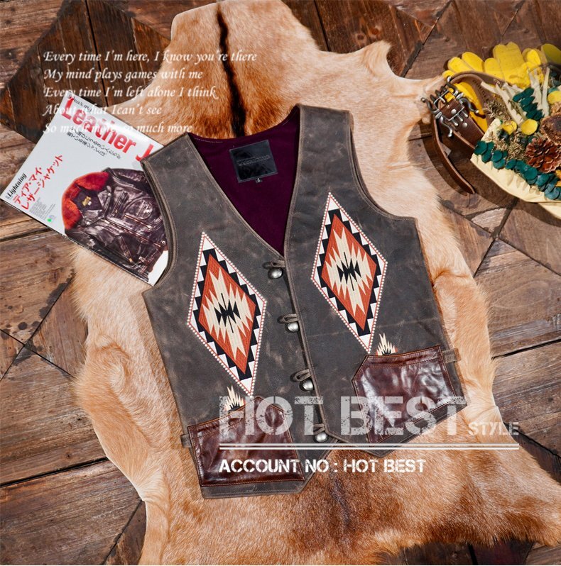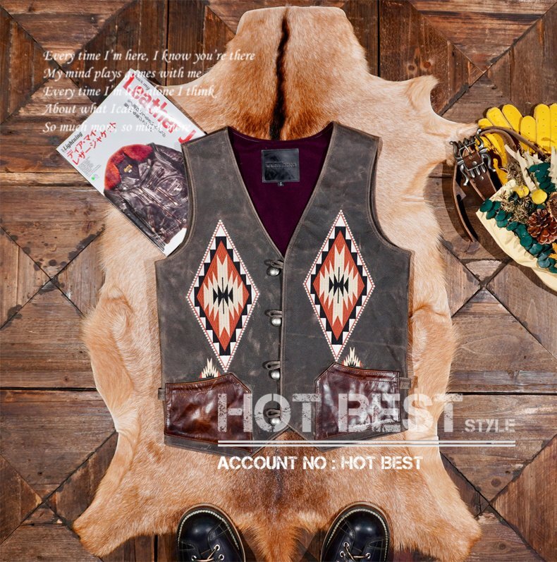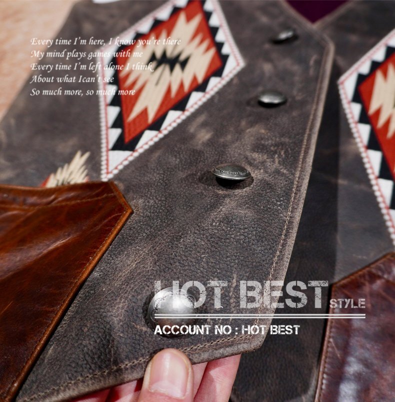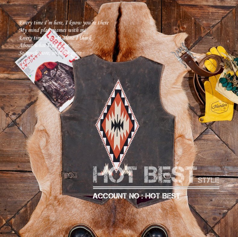 カウハイド ジャガード柄 本革 メンズ レザーベスト 本革ベスト 皮ベスト ジレ レザージャケット 牛革 Y1434/S~4XLサイズ指定可