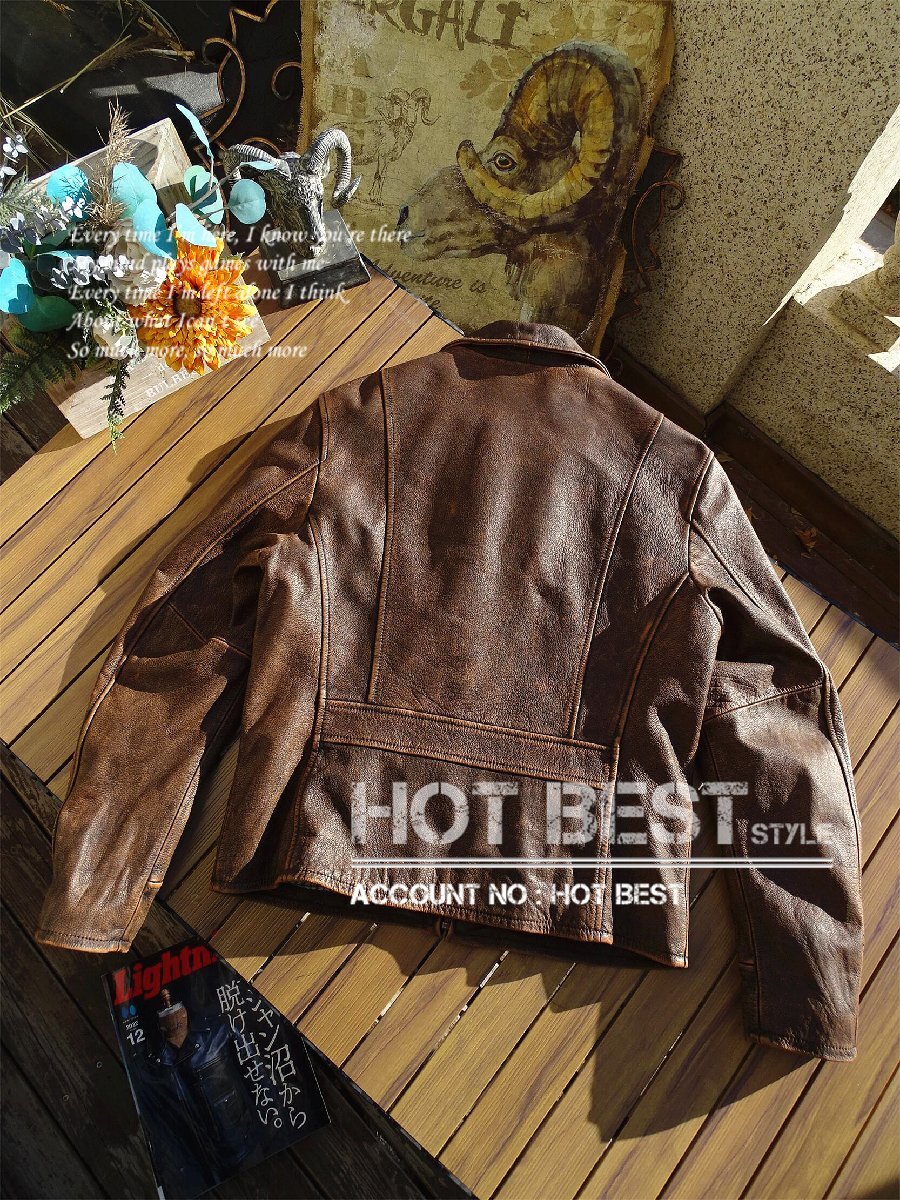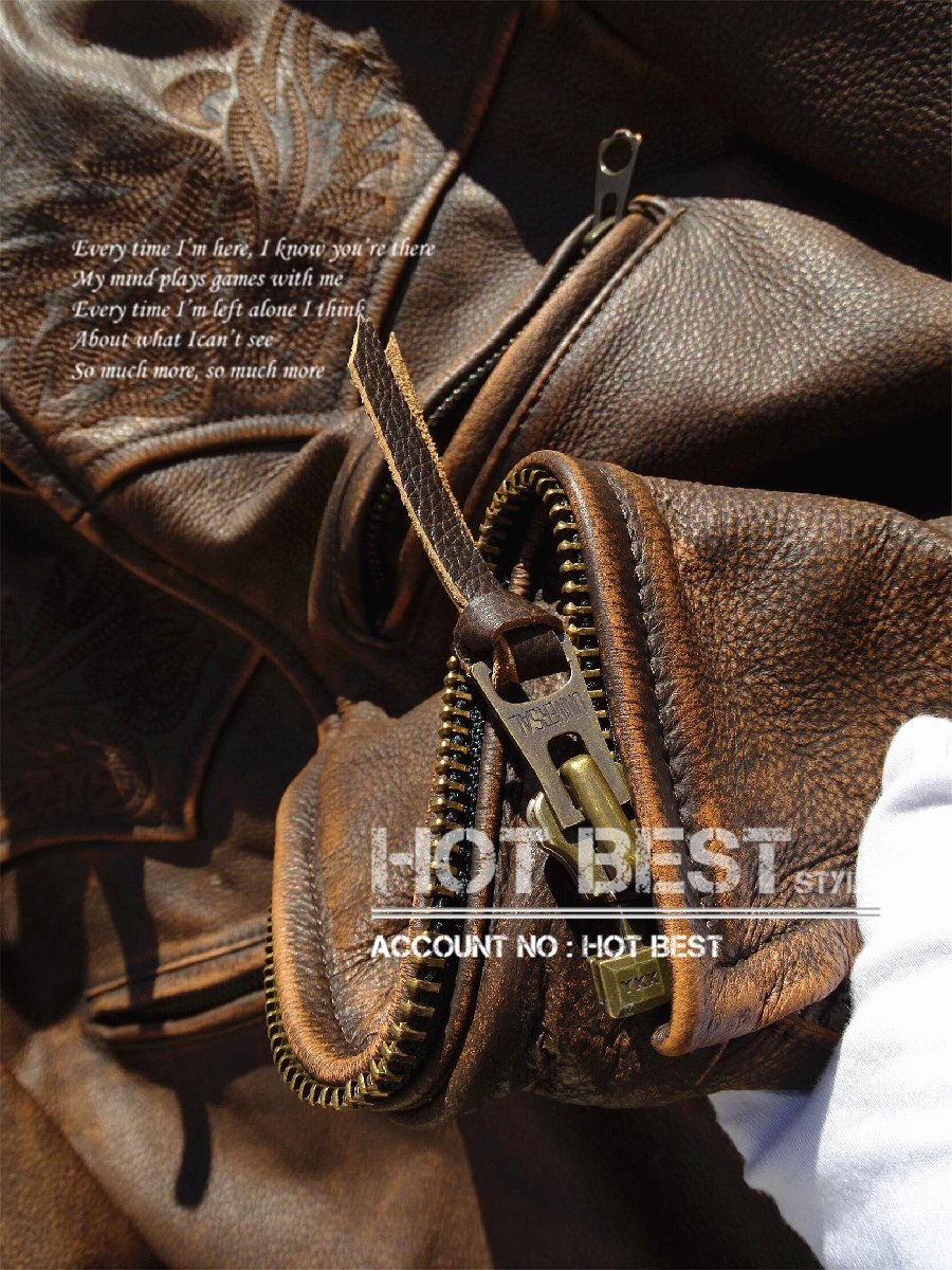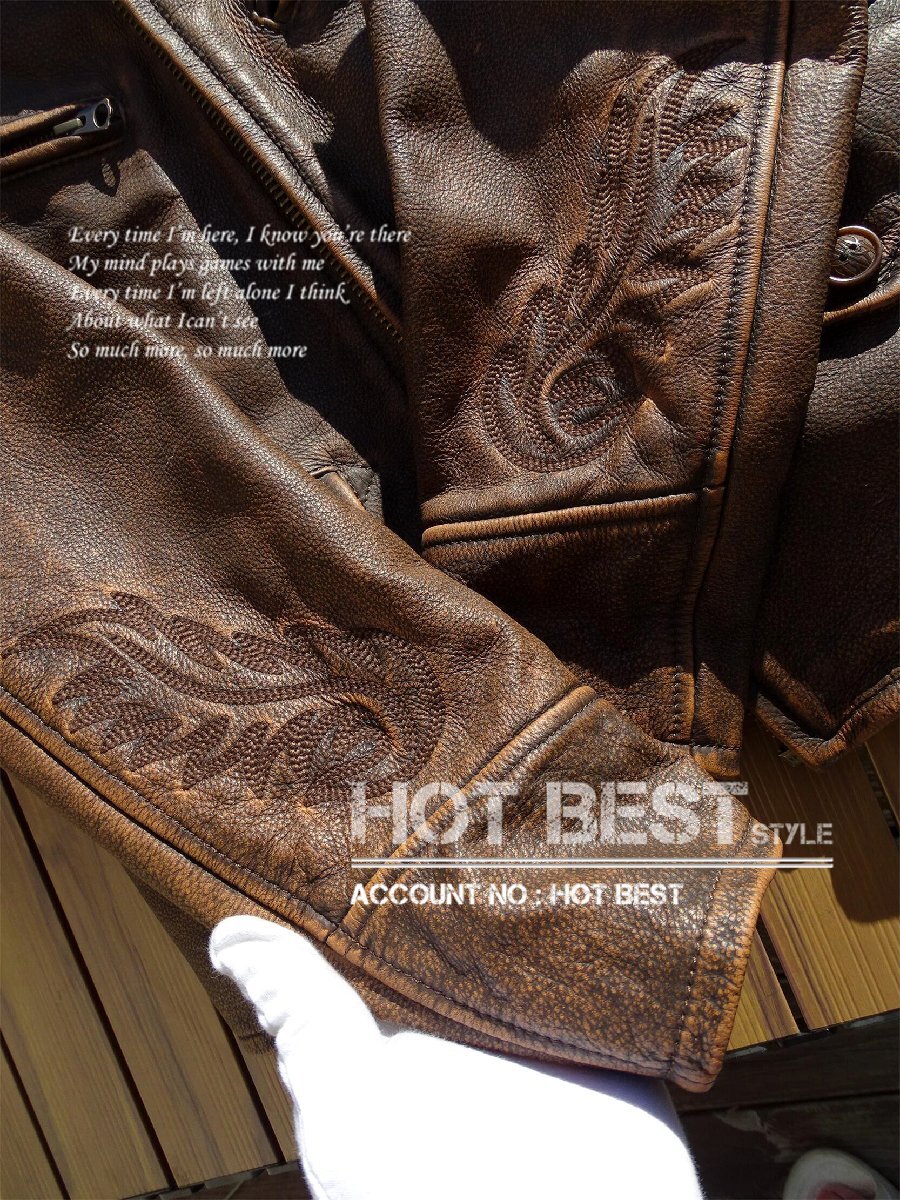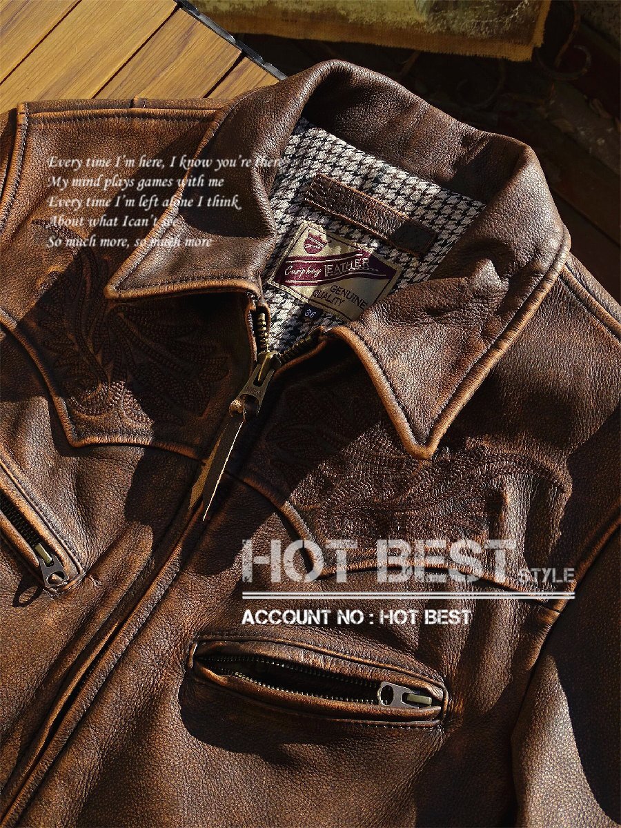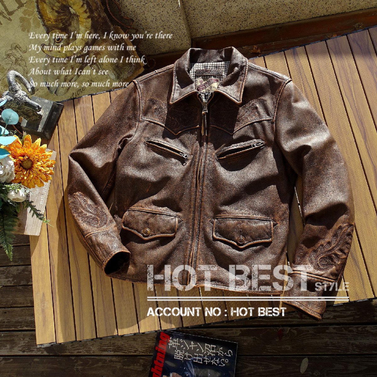1.0mm 茶芯カウハイド 20's ニュースマンコート 豪華刺繍 ブレーキマン ウォッシュ加工 ヴィンテージ 牛革Y2110/S~4XLサイズ指定可
