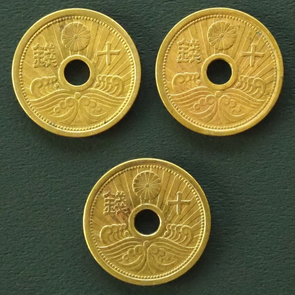 10銭アルミ青銅貨 昭和13年昭和14年 穴銭 昭和近代貨幣