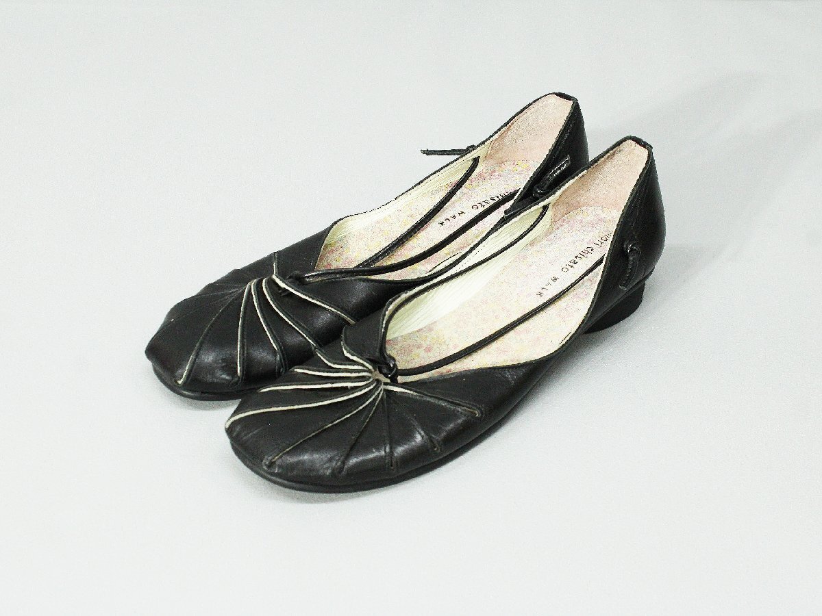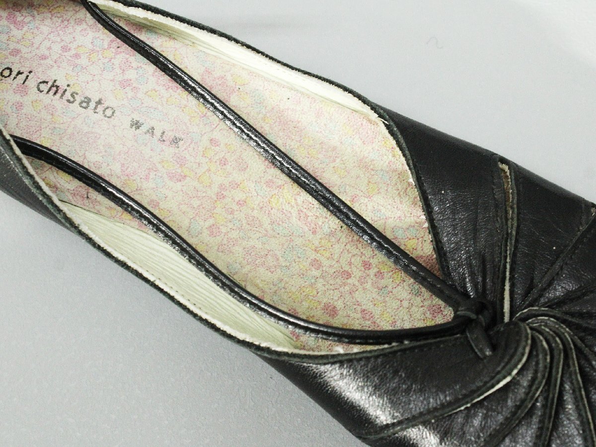 美品 TSUMORI CHISATO/ツモリチサト ローヒールラウンドトゥレザーパンプス 黒22.5 rm366