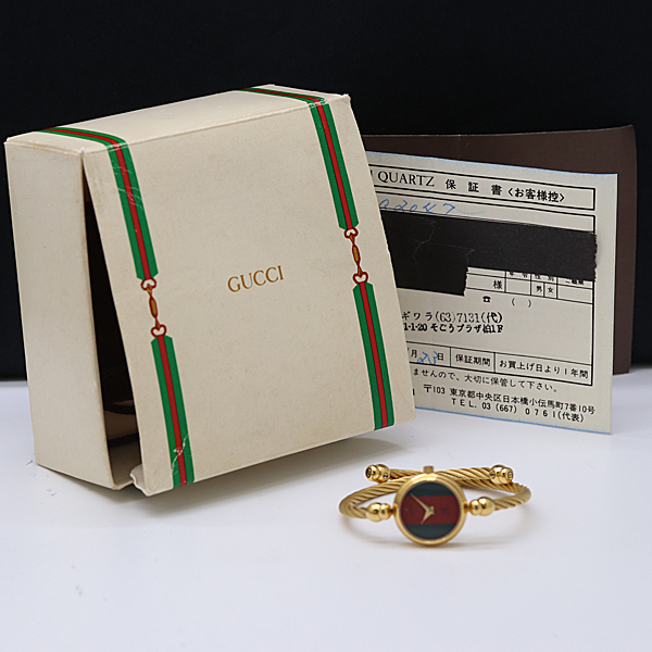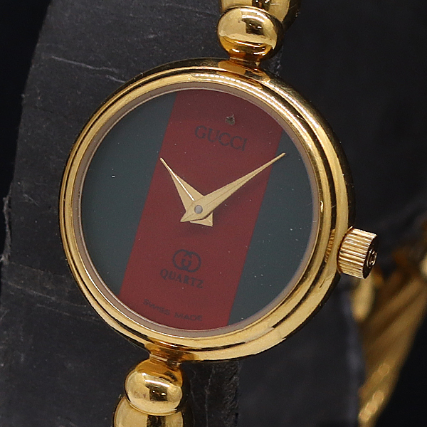1円 保/箱付 稼働 グッチ 2047L バングルウォッチ QZ シェリーライン文字盤 レディース腕時計 0882200 12ANT MST