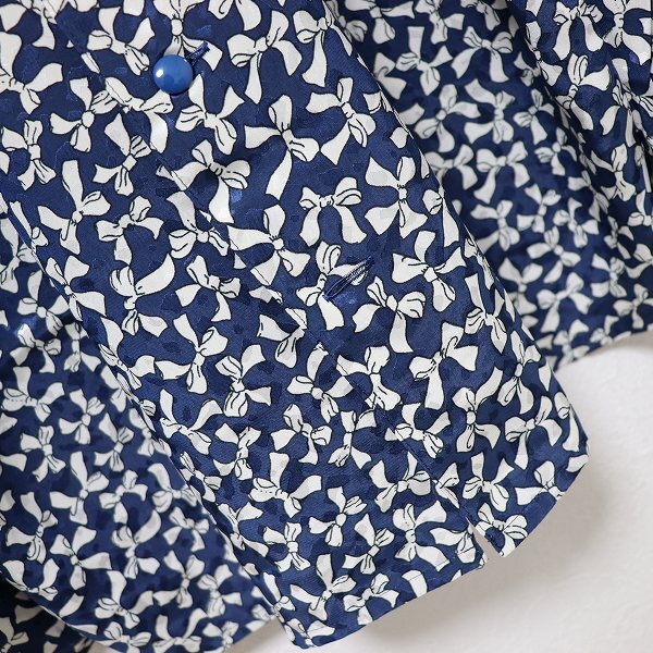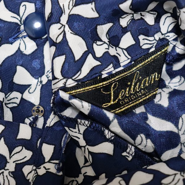 レリアン Leilian シャツ ブラウス リボン柄 総柄 リボン付き バックボタン x945325n