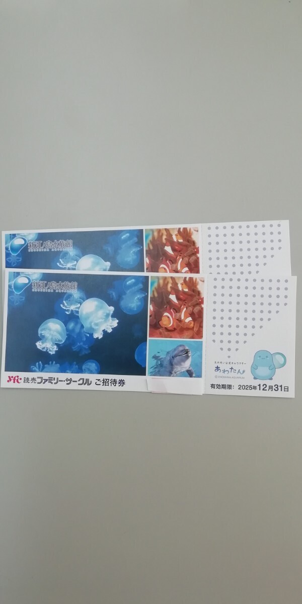 ★新江ノ島水族館招待券2枚です。期限12/31までです。普通郵便で発送いたします。送料込 ノークレーム・ノーリターンでお願いします。