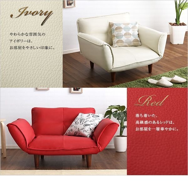 | 【ポイント】 大人がゆったりと座れる、1人掛けリクライニングカウチソファです。 ポケットコイルを使用した、座り心地抜群の多層構造です。 背もたれとひじ掛けは14段階リクライニングです。 オシャレで丈夫な木目調脚は着脱可能、取り外せばロースタイルになります。 お部屋を彩るPVCレザー4カラーからお選びいただけます。 |