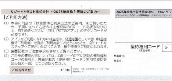リゾートトラスト株主優待3割引券1枚