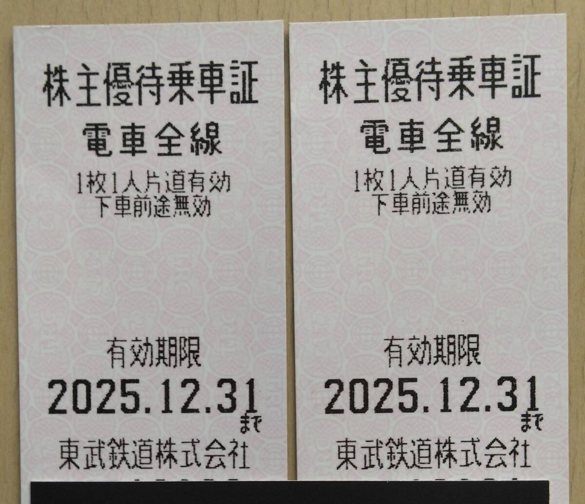 9、東武鉄道 株主優待券 乗車券 2枚の価格 有効期限25年12月31日迄 送料込み