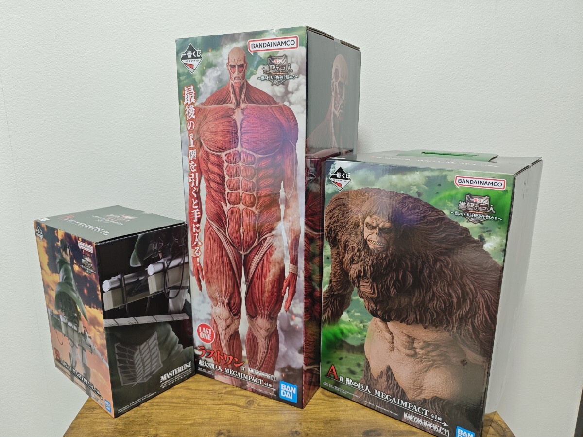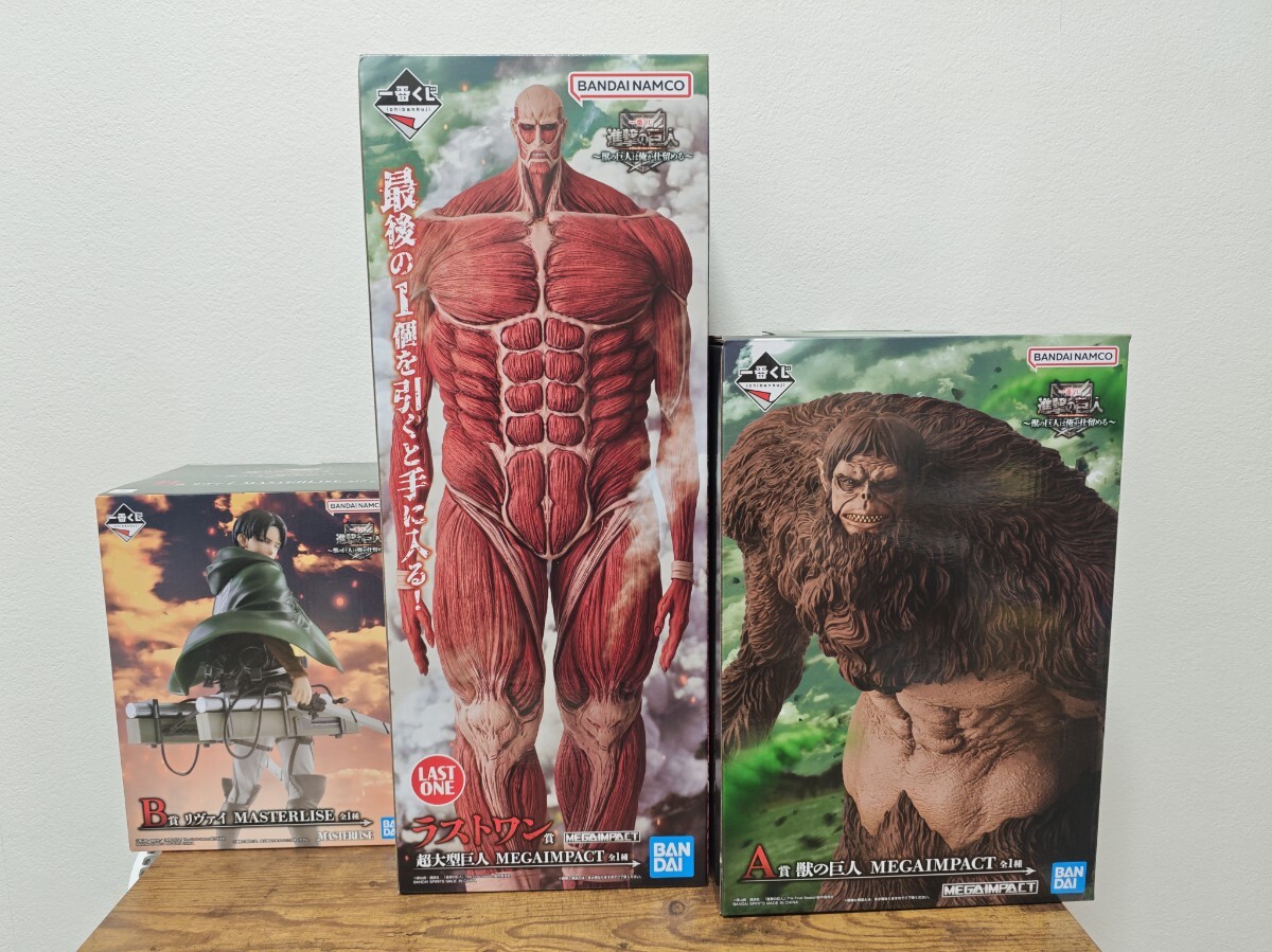 一番くじ 進撃の巨人 獣の巨人は俺が仕留める/A賞 獣の巨人/B賞 リヴァイ/ラストワン賞 超大型巨人 セット オマケエレンポスター他 です。
