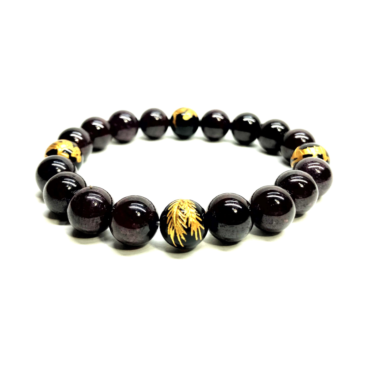 10mm 四神獣金彫オニキス×ガーネット パワーストーン ブレスレット天然石 運気上昇 開運 金運 恋愛運 青龍 白虎 玄武 朱雀 ☆