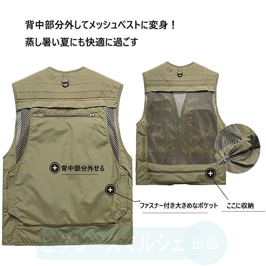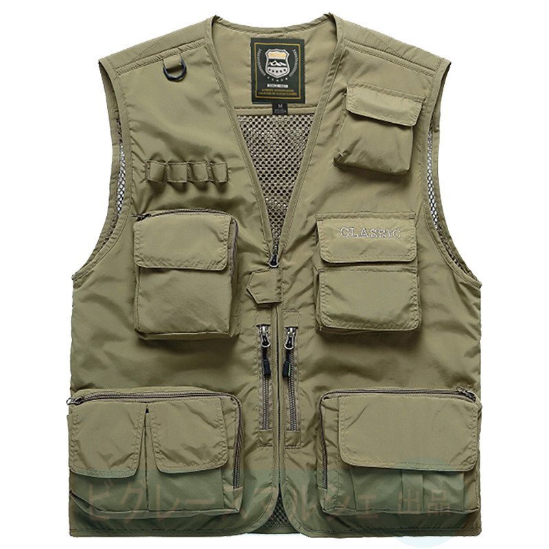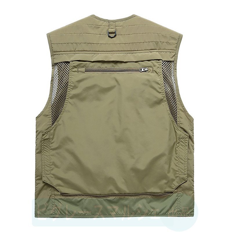 フィッシングベスト カメラマン メンズ アウトドア メッシュ ジャケット ベスト トップス 登山 多機能 速乾 作業服 カーキ hw1423.kq.3XL