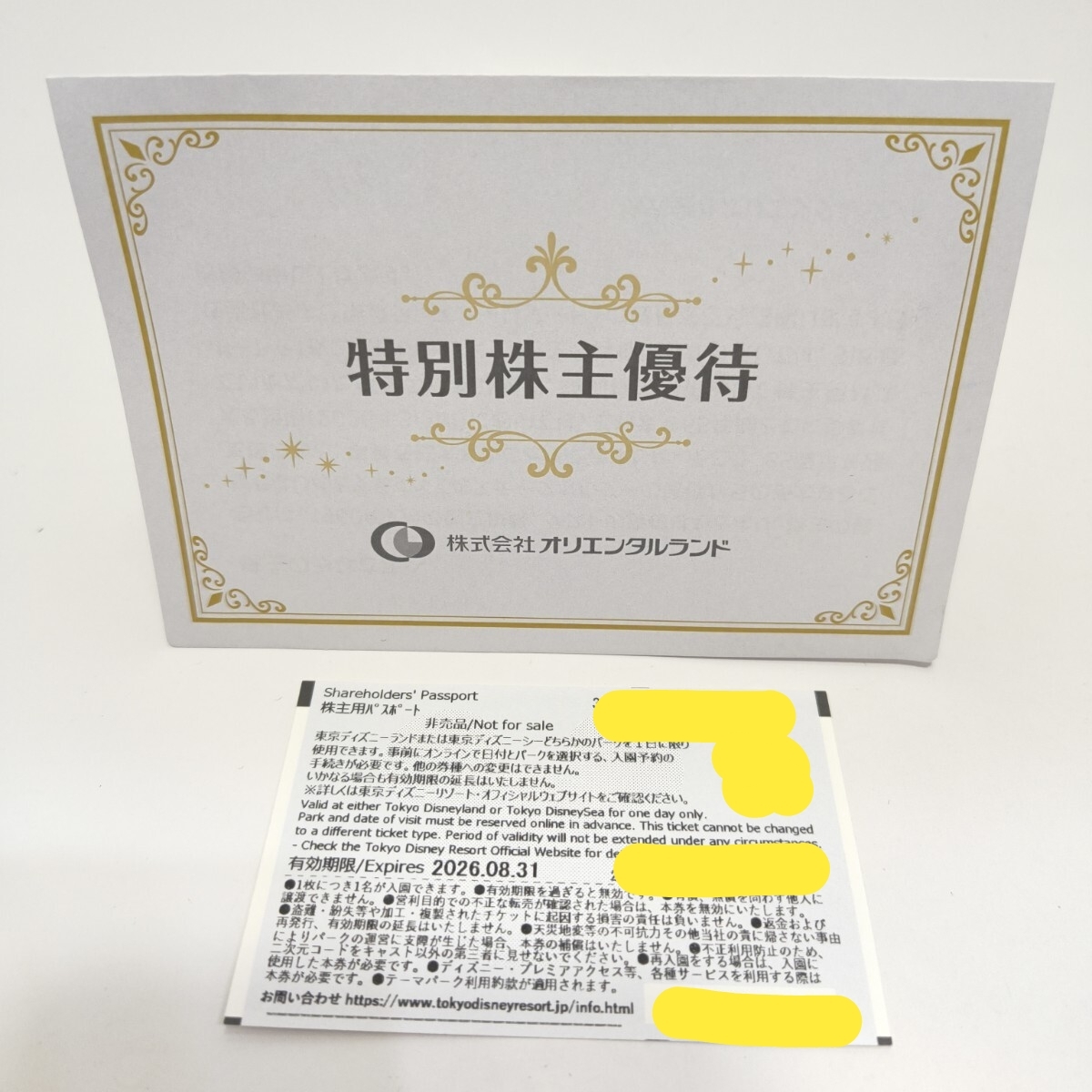 オリエンタルランド 株主優待 パスポート 有効期限2026年8月31日