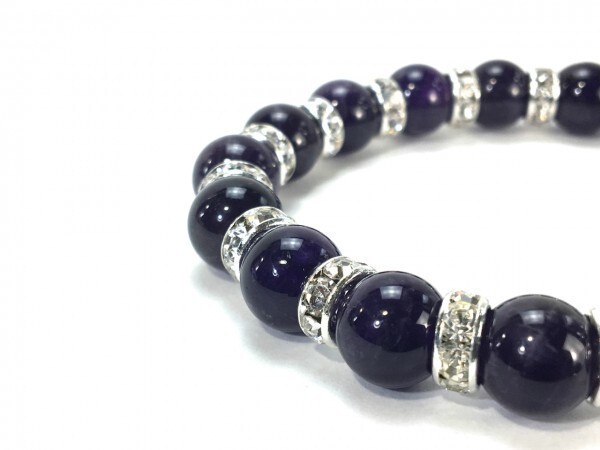 こちらは、10mm玉のアメジストを使用したパワーストーンブレスレットです。間にはロンデルを挟み高級感あるブレスレットに仕上げています。石大きさは腕にも馴染みやすいように10mm玉を使用して、サイズは内径約18cmです。(サイズ調節も無料で承っています。サイズ変更の場合は落札後、取引ナビにてご一報くださいませ。) 数に限りがございますので気になる方はお早めにどうぞ。