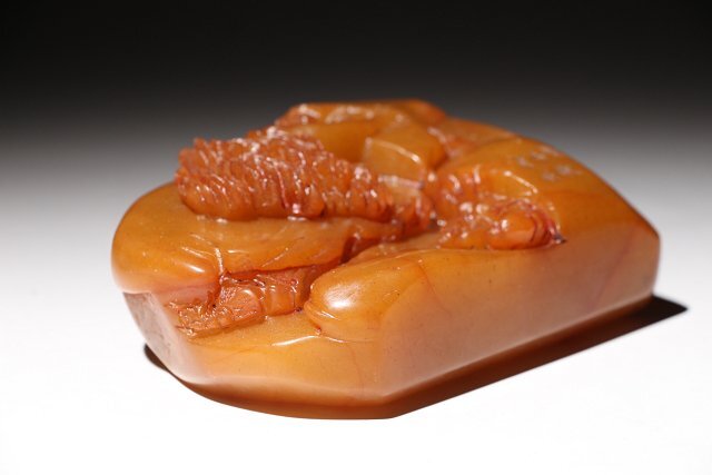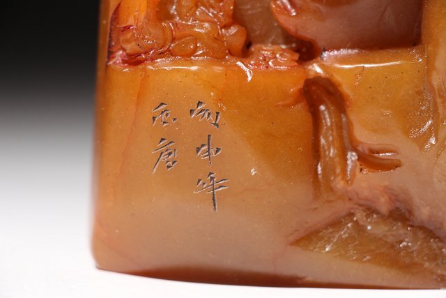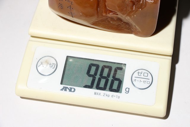 | ◇寸 法◇ | 田黄石 幅 約9cm×約5.2cm 高さ 約12.3cm 重量 約986g 台 幅 約11cm×約6.3cm 高さ 約3.3cm |