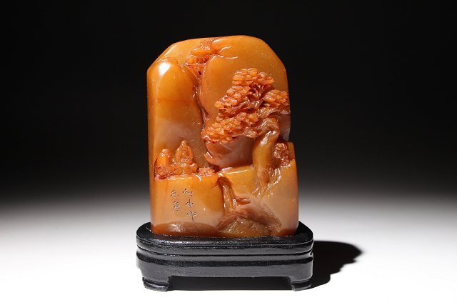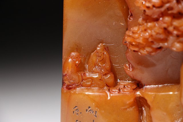 | ◇商品名◇ | ☆撫子☆田黄石 印材 風景人物彫刻 台付き 重量約986g (検)置物 寿山石 田黄 黄石彫 唐物 中国美術 古玩 | ||