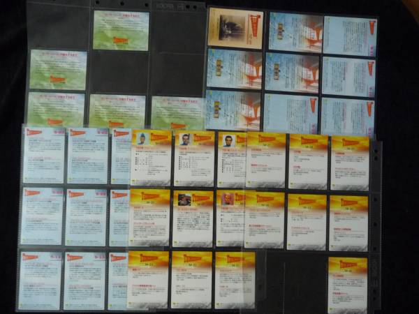 | ・1998年に、スカイネットが発売したトレカです。48枚(全114枚)です。 【キャラクターカード】 4枚(全15枚) ・C-01~03、11 【ストーリーカード】 13枚(全18枚) ・S-01~03,06,08,09,10,13~18 【メカカード】 16枚(全47枚) ・M-01~03、05,07,20~23,25,27,28,30,33,38,45 【スペシャルカード】 1枚(全22枚) SP-09 【パズルカード】 5枚(全9枚) P-00,06~09 ・スレなどがあります。その他状態につきましては画像にて、ご判断下さいませ。 ・完璧を求める方、神経質な方の入札はご遠慮下さい。 ・自宅保管品であることをご理解下さい。 | |