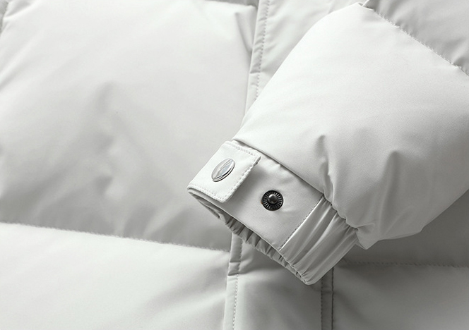 上質な金属ジッパーは滑らかで耐久性が高く、何度開閉しても引っかかりにくい。防風カフは温度をしっかり閉じ込め、冷たい風の侵入を効果的に防ぐ。『方形ダウン充填技術』により、ダックダウンが均一に分布し、死角なく保温。