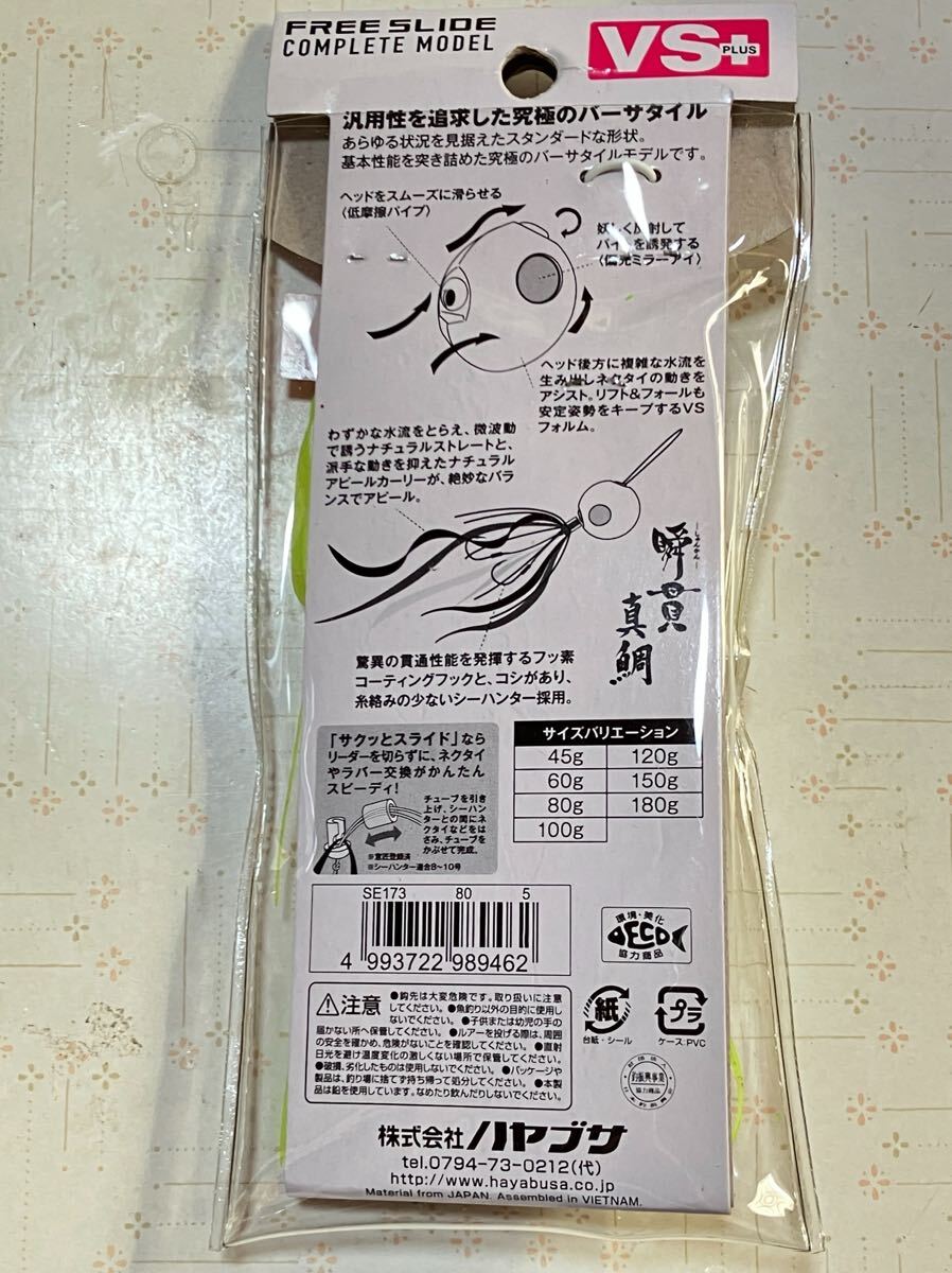 ハヤブサ フリースライド タイラバ トリプルチャート 80g