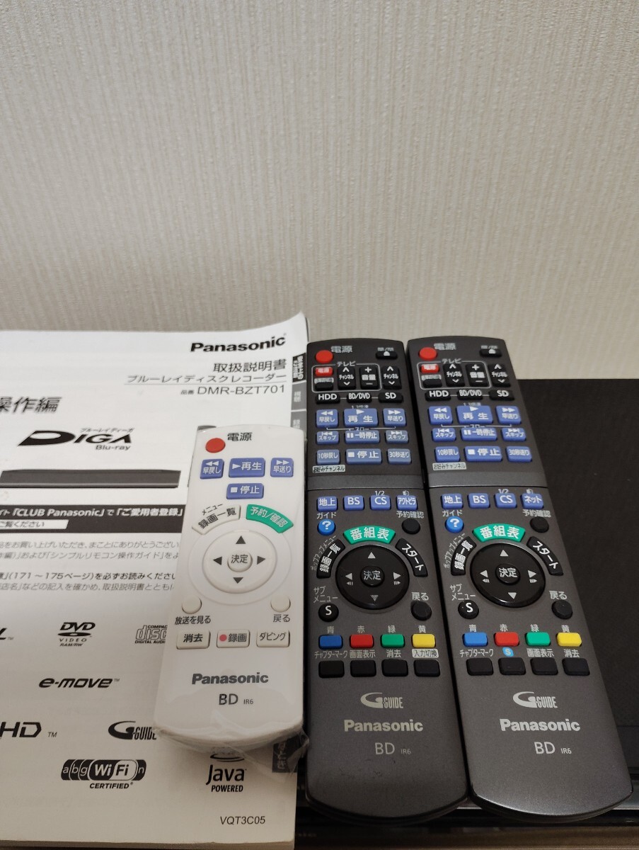 本体、B-CASカード、電源コード、リモコンのセットです。