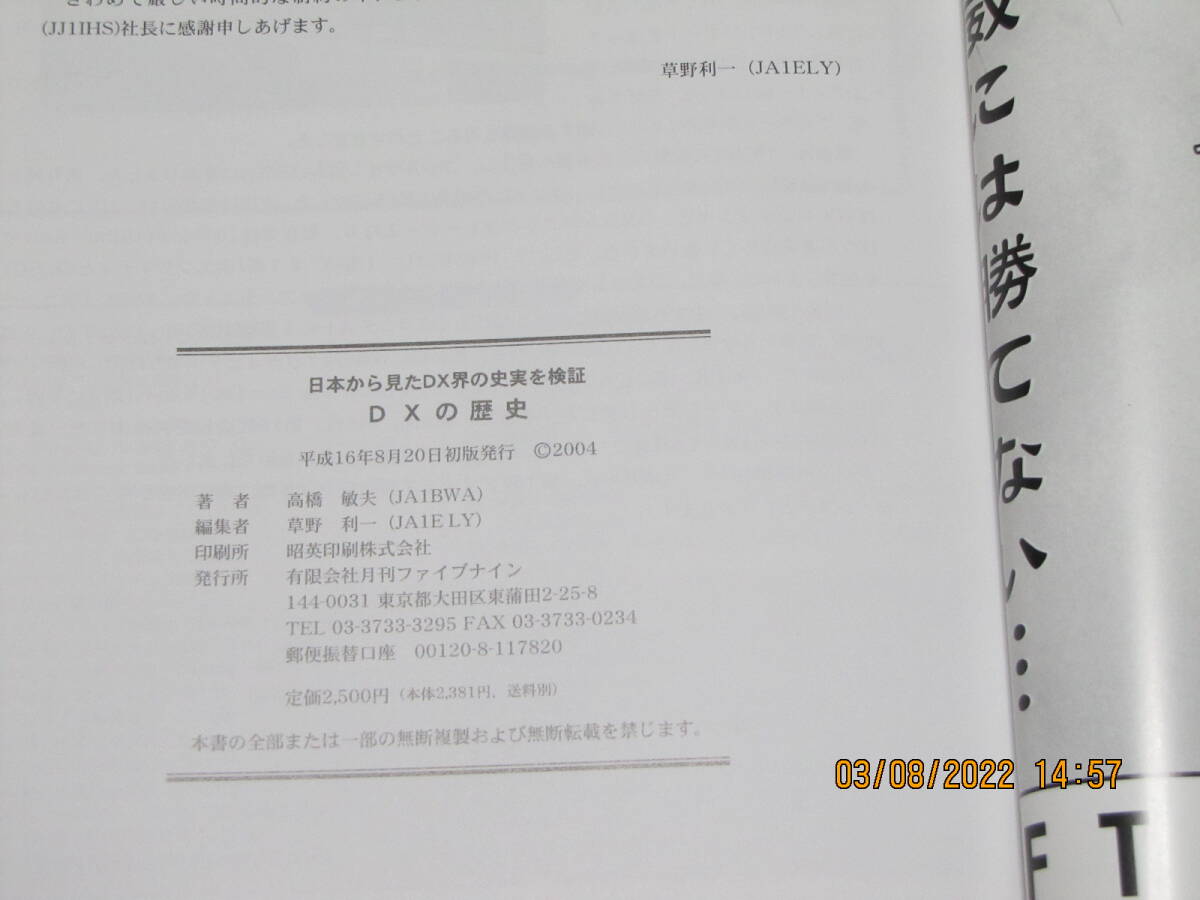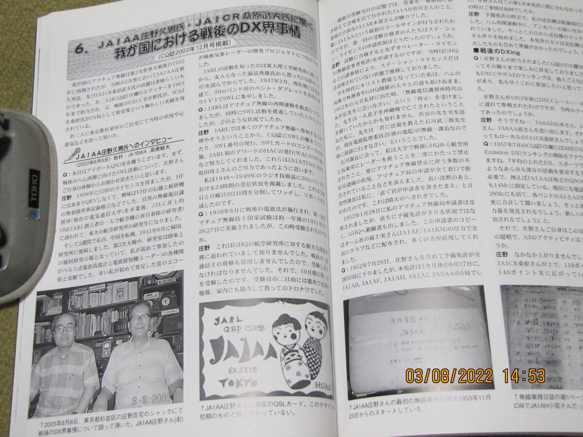 書籍 「 DXの歴史 」 -日本から見たDX界の史実を検証- 258頁 JA1BWA高橋敏夫著 平成16年8月20日発行 月刊ファイブナイン