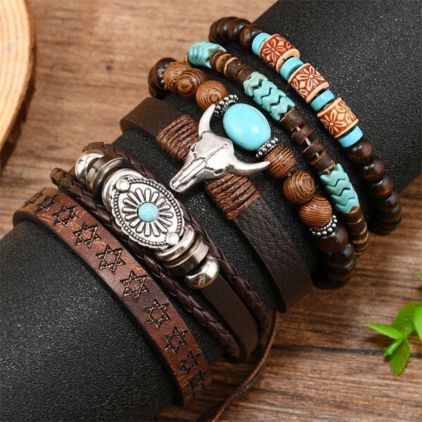 | 商品説明 | ブレスレット6個セットです ナバホ インディアン ウエスタン系 アメカジ ヒッピー系 ボヘミアン Y2Kファッションと相性が良いアイテムです ヴィンテージ感があり、重ね付けもOK コーデのワンポイントにおすすめ ロングホーン牛頭 シルバー ウッド 石 レザーなど全ての要素が盛り盛りです サイズは調節できるようになっているので 腕周りが大きい方やレディースでも安心です 素材 PUレザー ターコイズ(フェイク) ナバホパール(フェイク) ビーズ 合金 |