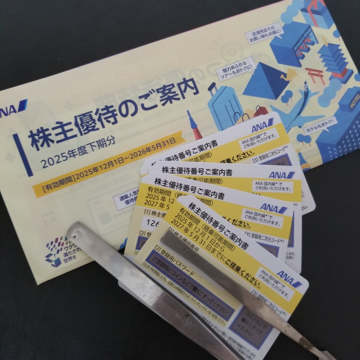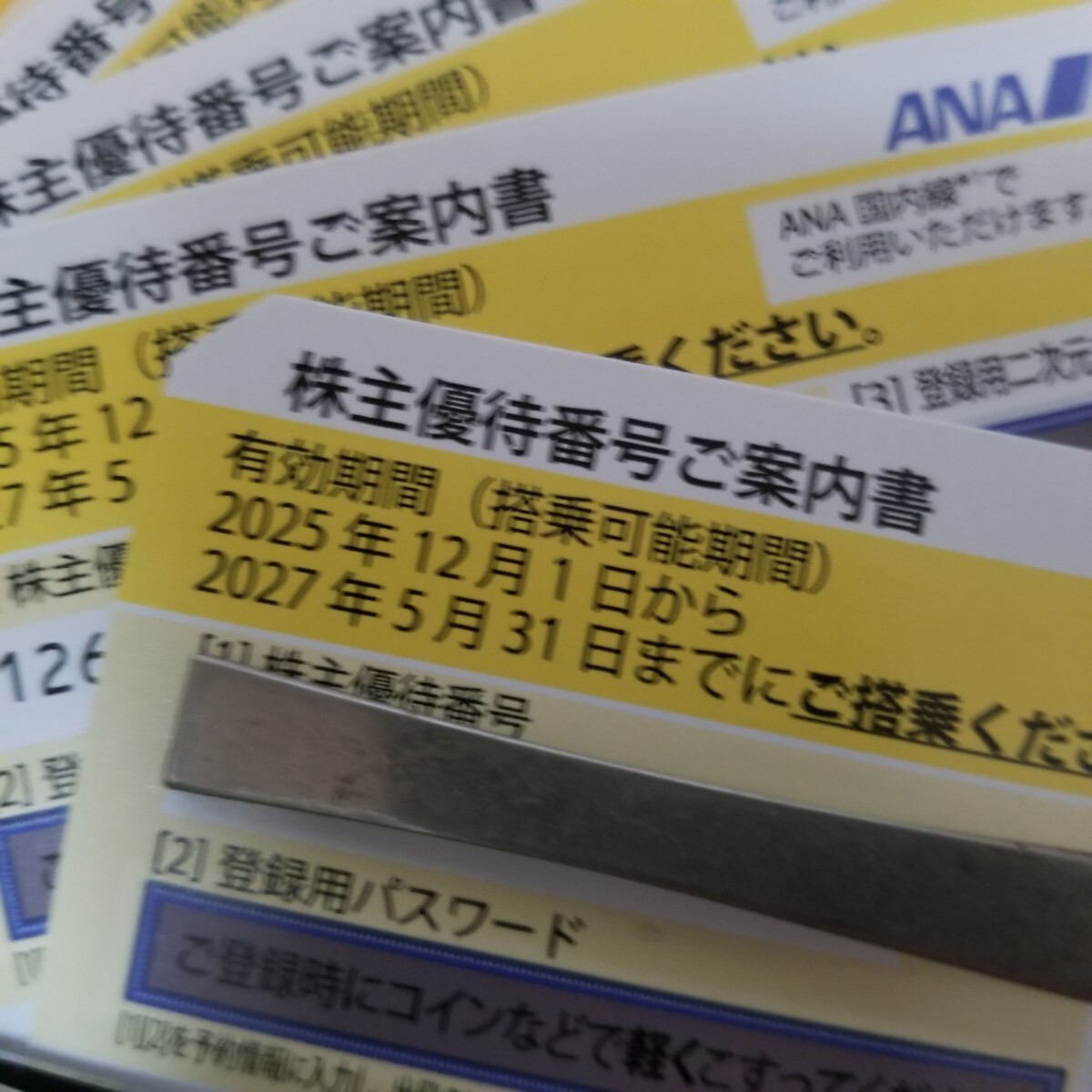 ・最新 送料無料 2027年5月31日(ANA)株主優待券4枚 グループ優待券付属 ana 株主優待 航空券 搭乗券 全日空