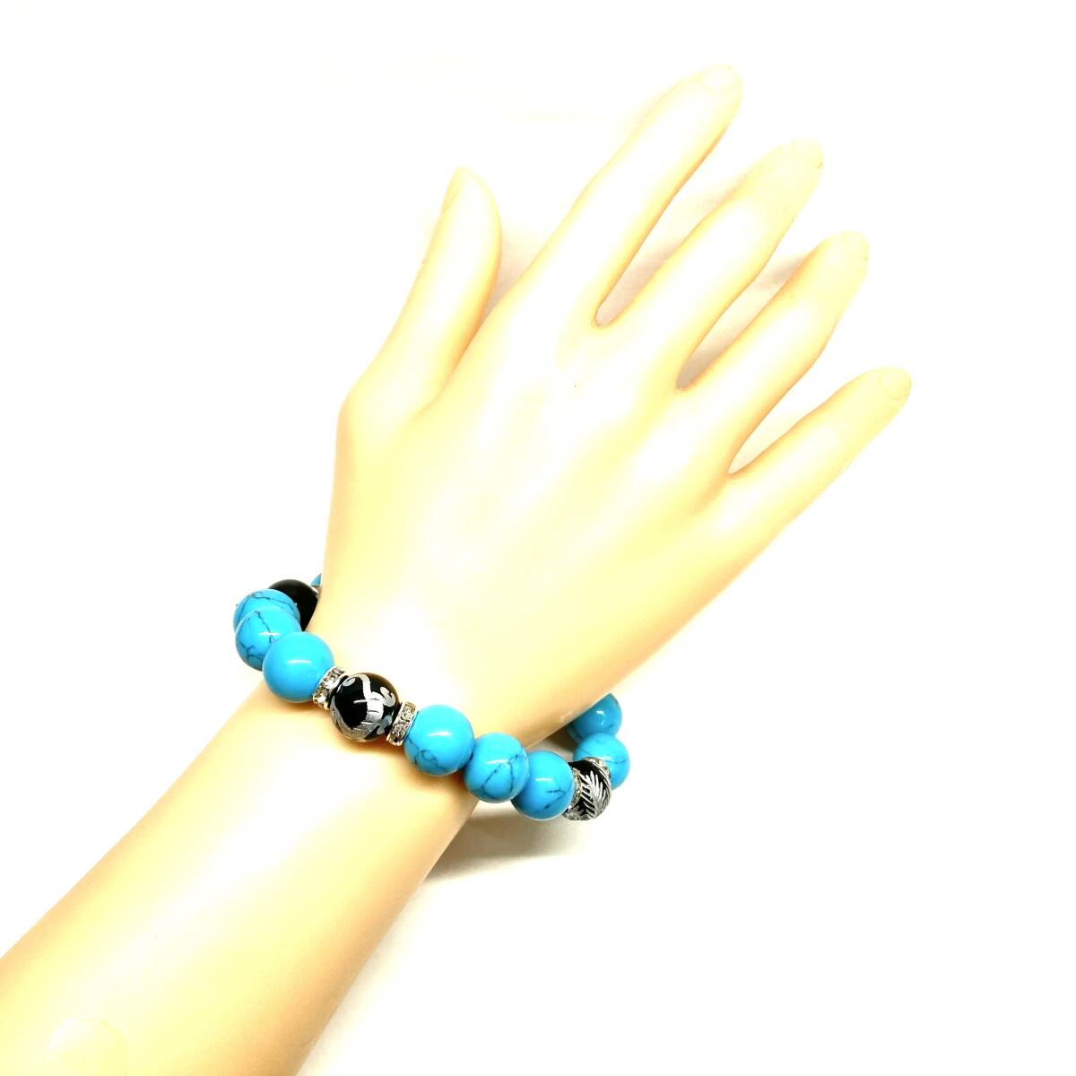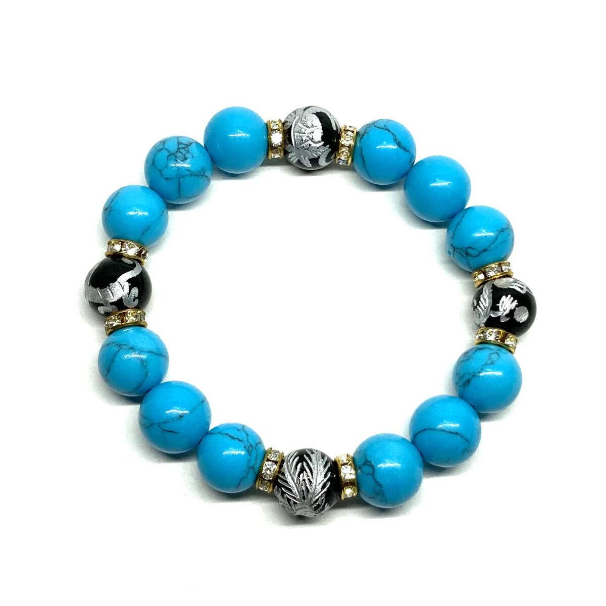こちらは、四神獣金彫オニキスとターコイズを組み合わせたパワーストーンブレスレットです。四神獣は、中国の伝説で4つの方向(東西南北)を守護する神聖な神。四神獣、厄災から身を守り、多くの運気を呼び込むと言われております。石大きさは程よくインパクトのある12mm玉で内周 約17cmです。 数に限りがございますので気になる方はお早めにどうぞ。