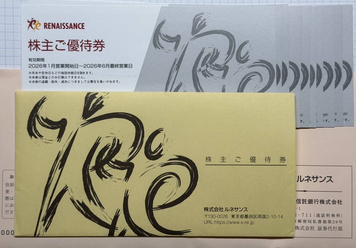 先日届いた最新のルネサンスの株主優待券10枚です。