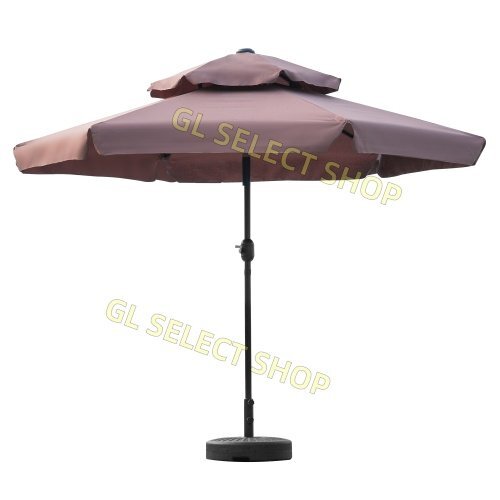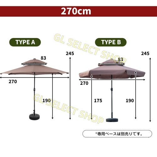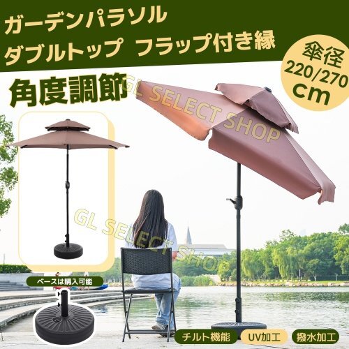 【ブラウン・荷葉辺デザイン・直径270cm ・ベース付き】パラソル+ベースセット 30+UPF紫外線対策 角度調整 パラソルセット ベース