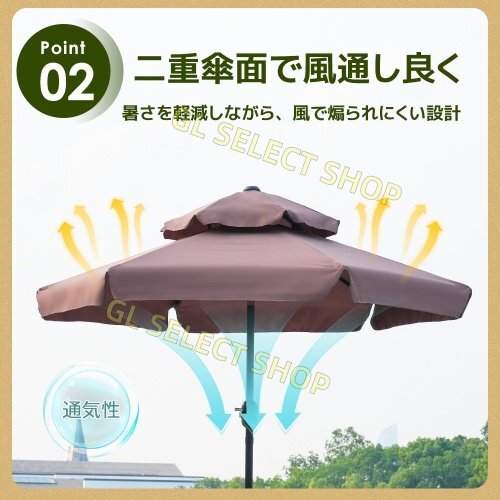 • 【ダブルトップ構造】二重傘面で風通し良く、日差しをしっかり遮断。暑さを軽減しながら、風で煽られにくい設計。
