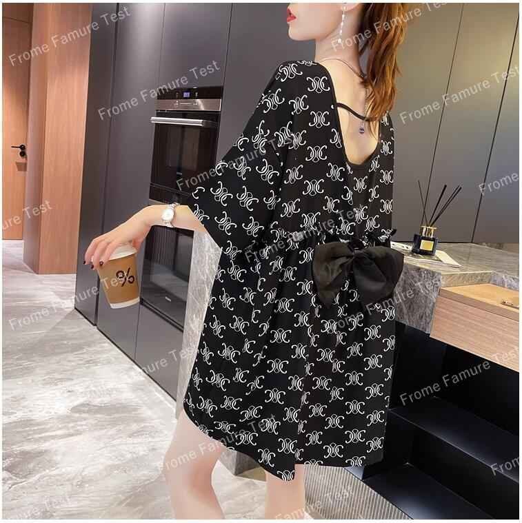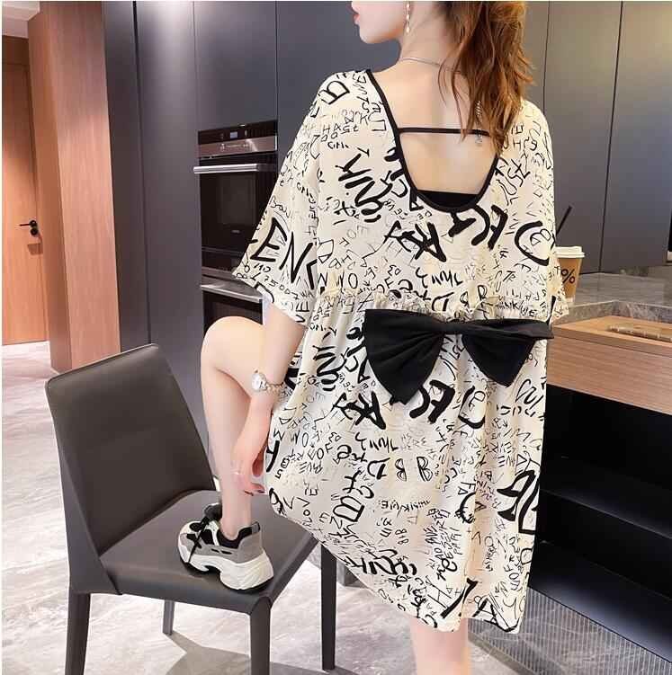 半袖Tシャツ ロング丈 リボン 韓国ファッション レディース XL ブラック