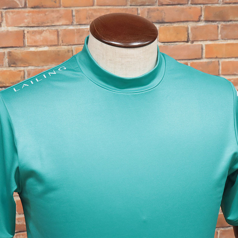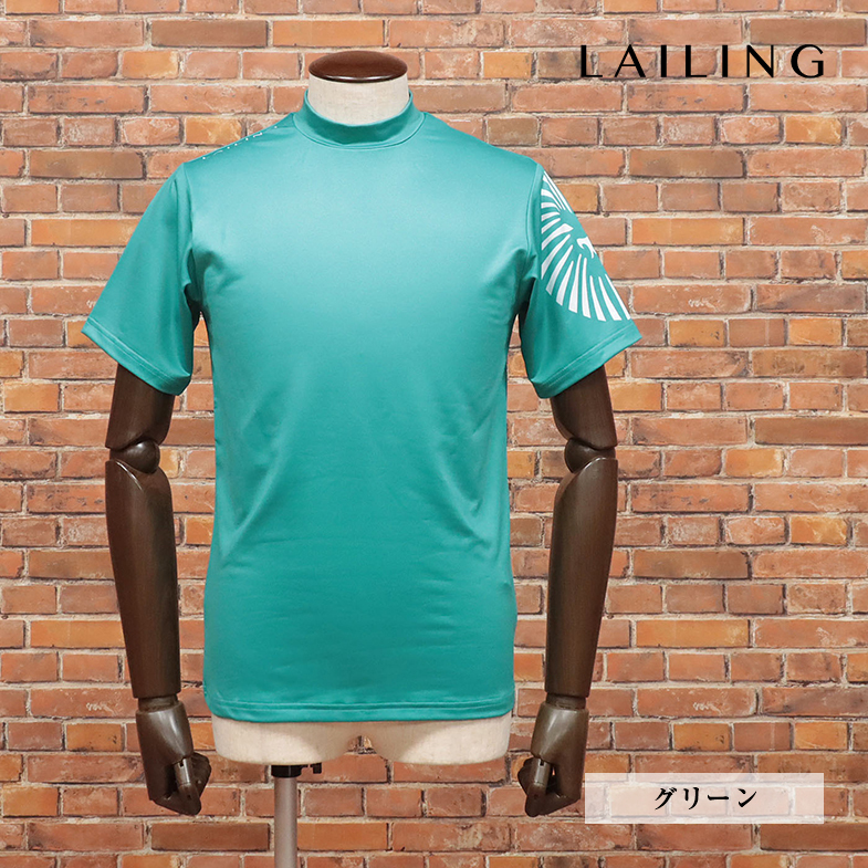 1円/春夏/LAILING/Mサイズ/半袖 モックネック シャツ 吸水速乾 ロゴ プリント ゴルフ ライリング 新品/緑/グリーン/ir106/